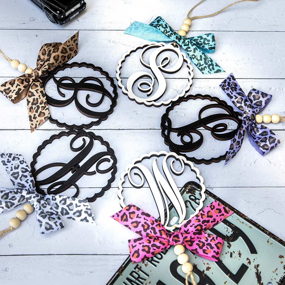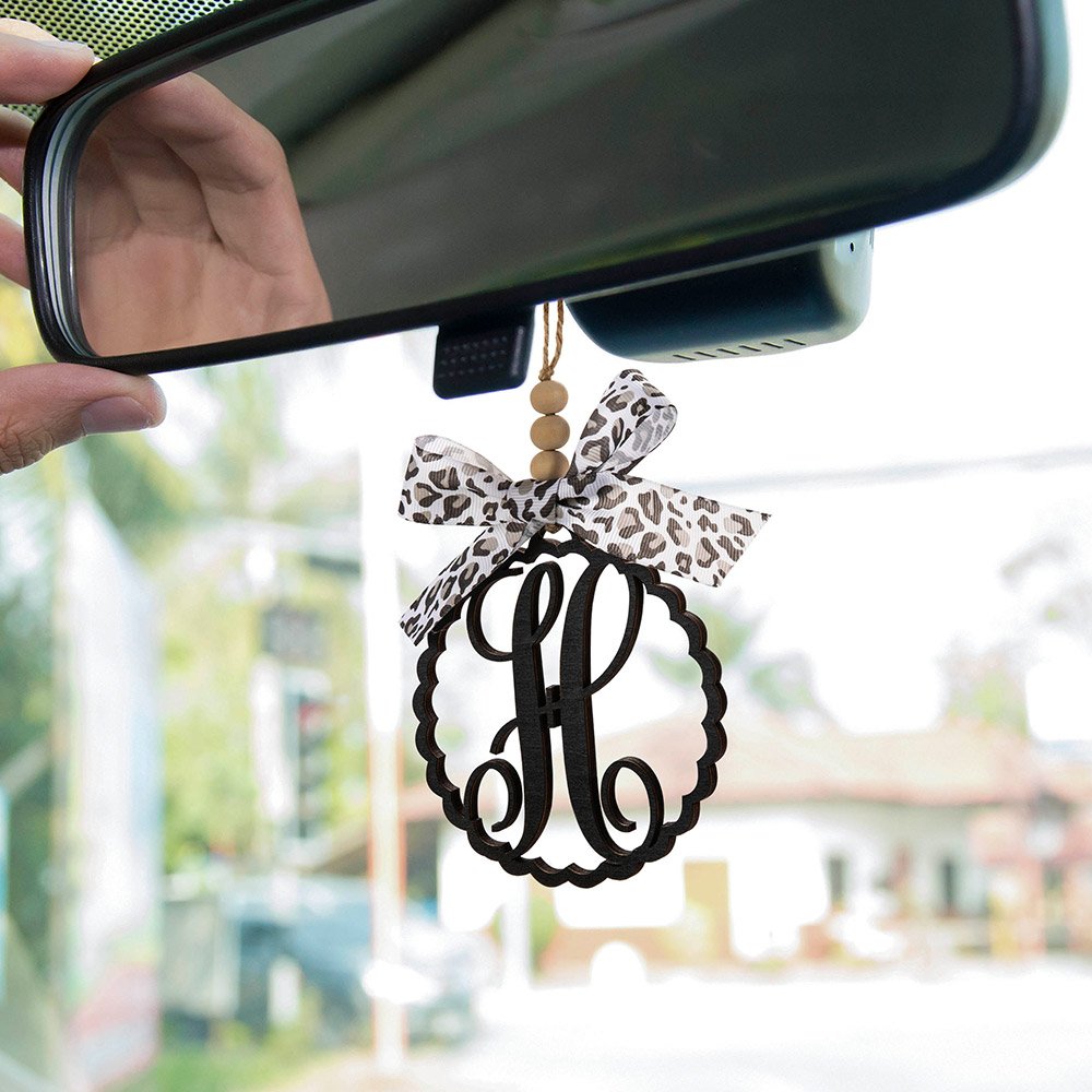 • L'imprimé léopard a toujours été un design élégant et classique. L'ajout d'éléments imprimés léopard à la décoration de votre voiture rendra l'intérieur de votre voiture plus charmant. Accessoires de voiture en bois personnalisables, le cadre principal est creux et rond, vous pouvez choisir n'importe quelle lettre à l'intérieur, il y a 3 perles accessoires naturelles et un bracelet en soie léopard. Emportez-le et donnez à votre voiture un aspect neuf. Il peut également vous apporter une bonne humeur tout au long de la journée.