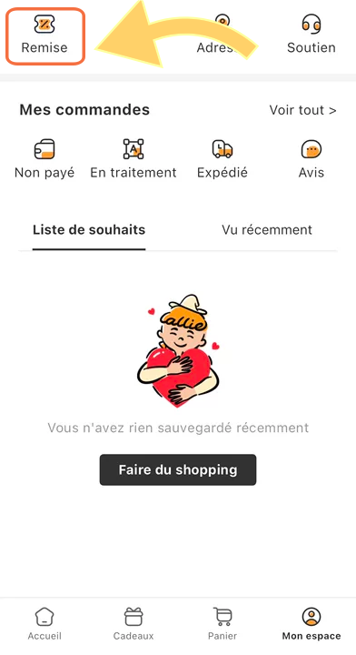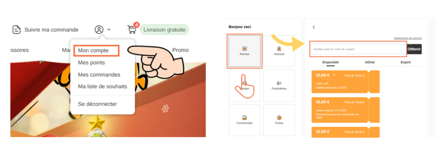2.Sélectionnez « Remise », puis saisissez votre code promo.