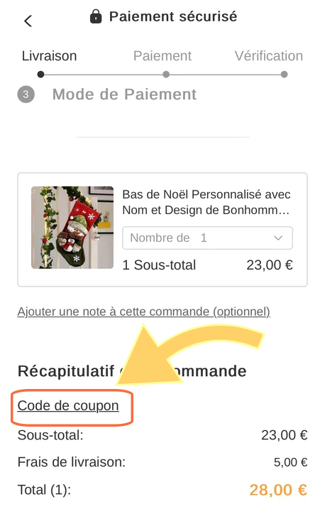 PS : Vous pouvez saisir le code promo directement sur la page de paiement