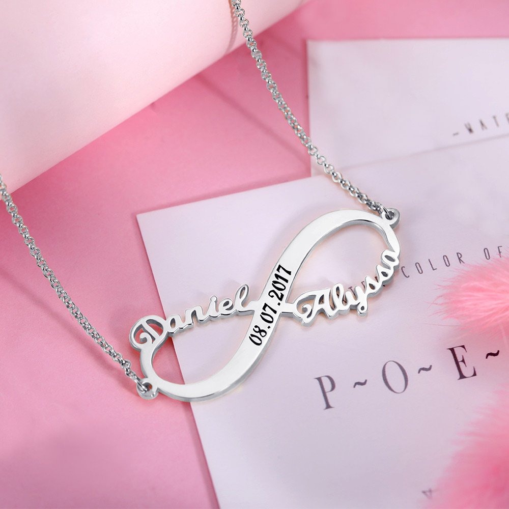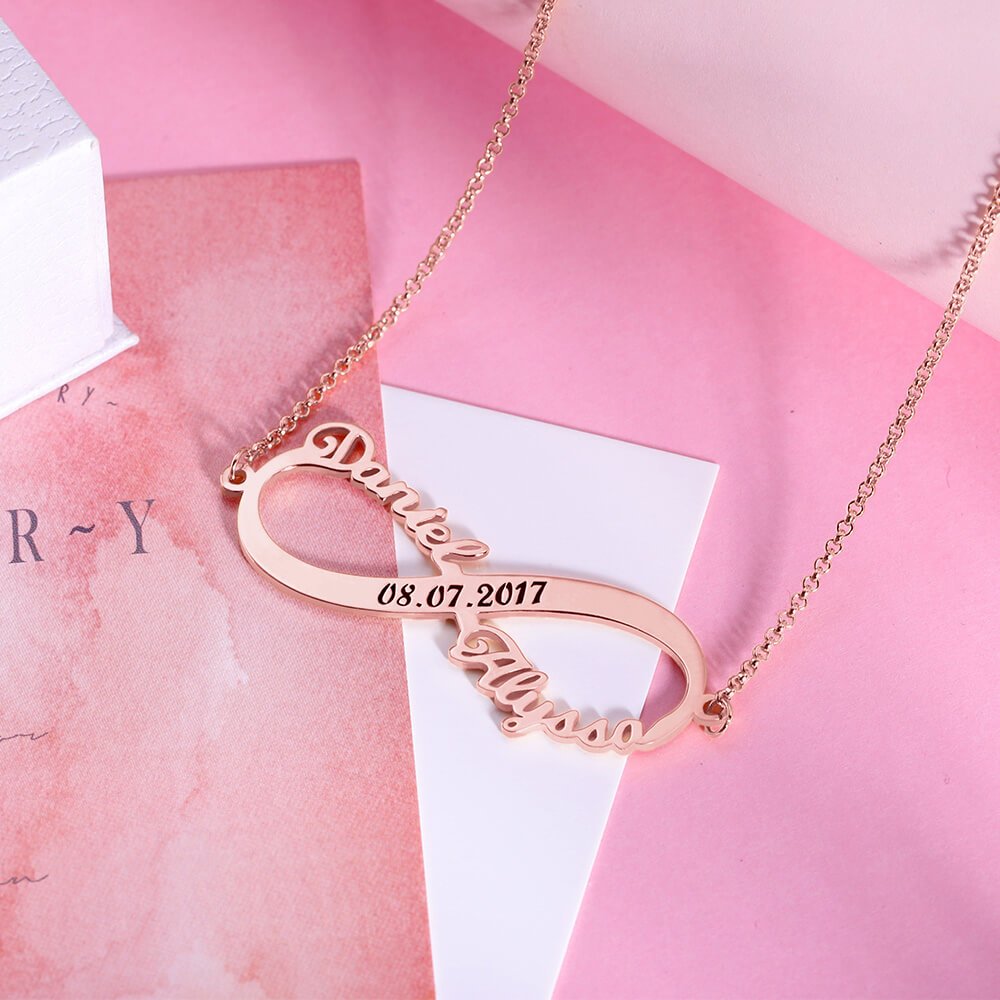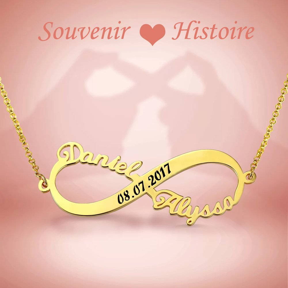 Ce collier est un véritable témoignage du caractère unique de votre histoire d'amour. Personnalisé avec votre nom et celui de votre partenaire, ainsi qu'avec une date qui vous est chère et qui a une signification particulière, ce pendentif devient un trésor unique qui vous rappellera à jamais le lien indéfectible que vous partagez.