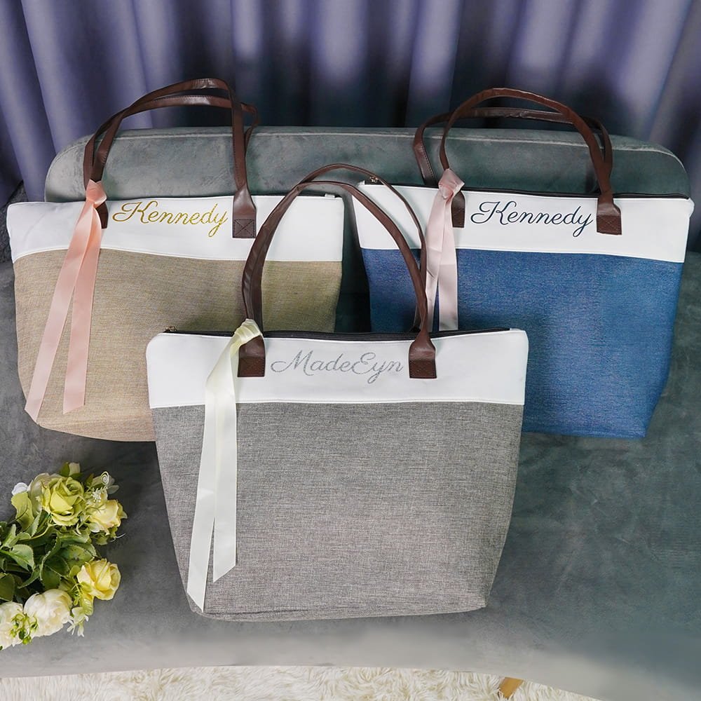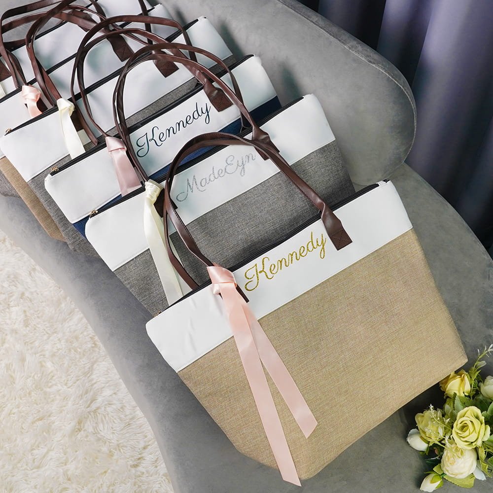 Les sacs fourre-tout pour demoiselles d'honneur sont fabriqués en toile de polyéthylène de haute qualité et la fermeture à glissière empêche vos affaires de tomber. Ces sacs sont confortables et durables, respectueux de l'environnement et réutilisables.