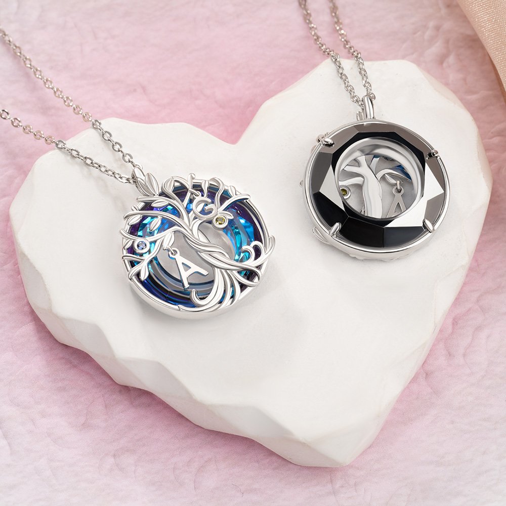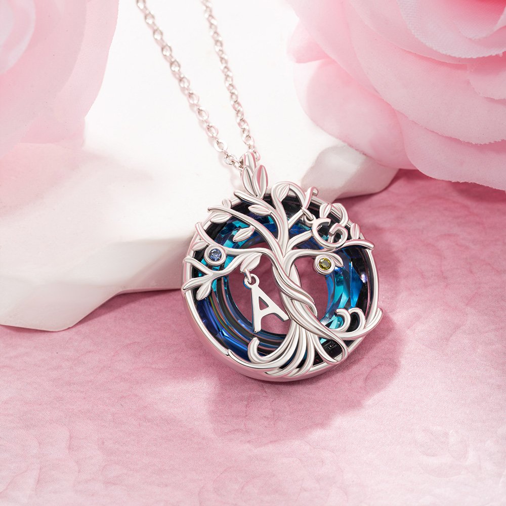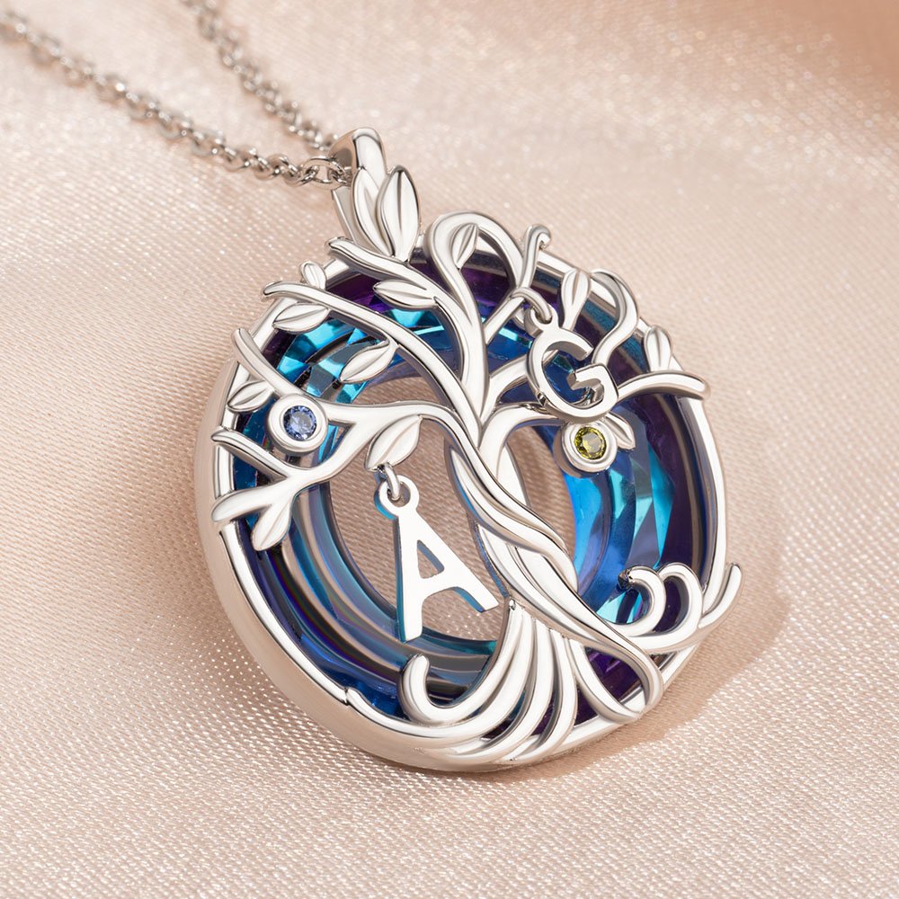 Ce collier est conçu en combinant le concept de l'anneau cosmique et de l'arbre de vie. L'anneau cosmique est le résultat d'impacts répétés sur la terre et sur une longue distance, contenant une variété d'éléments et la cristallisation de la lumière de l'univers. L'énergie qu'il nous apporte est unique et curative. L'arbre de vie symbolise la chance, la santé, la croissance et la force. Ce collier arbre de vie est incrusté de cristaux ronds bleus de haute qualité, il est plein d'élégance et de charme. Ce produit peut être personnalisé avec 1-4 initiales et 1-2 pierres de naissance, un cadeau parfait pour votre mère, épouse, amie, et grand-mère.