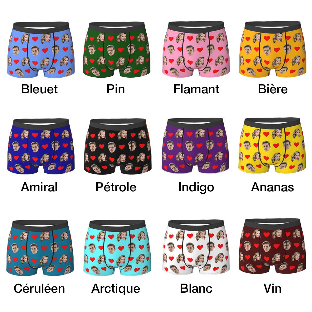 Caleçon Motif Cœur d'Amour Sous-Vêtement Personnalisé avec Photos de Visages Drôles Cadeau d'Anniversaire Saint-Valentin pour Lui