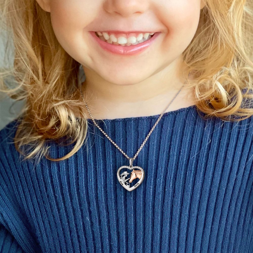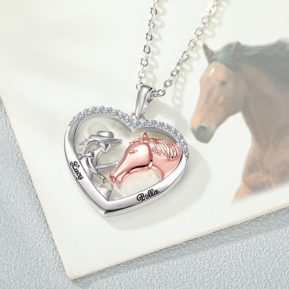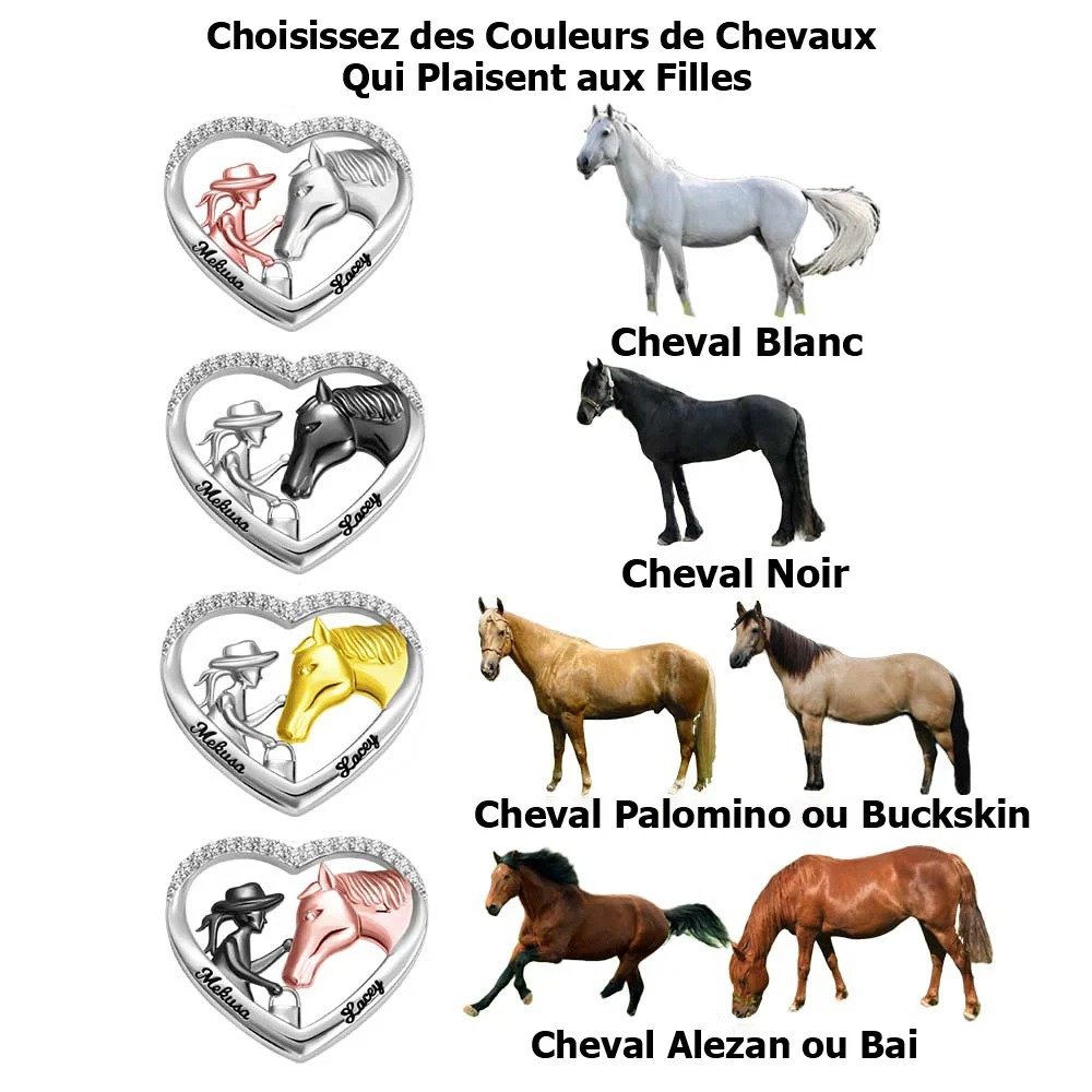 Les chevaux ont toujours été considérés comme braves, libres, courageux et passionnés. Il symbolise l'esprit positif de la vie. Les gens croient que les chevaux leur portent chance. Une jeune fille caresse légèrement son cheval préféré et semble se parler. C'est aussi la fille qui partage habituellement ses secrets ou ses joies avec ses amis les animaux. En portant ce collier, tu auras encore plus de chance.