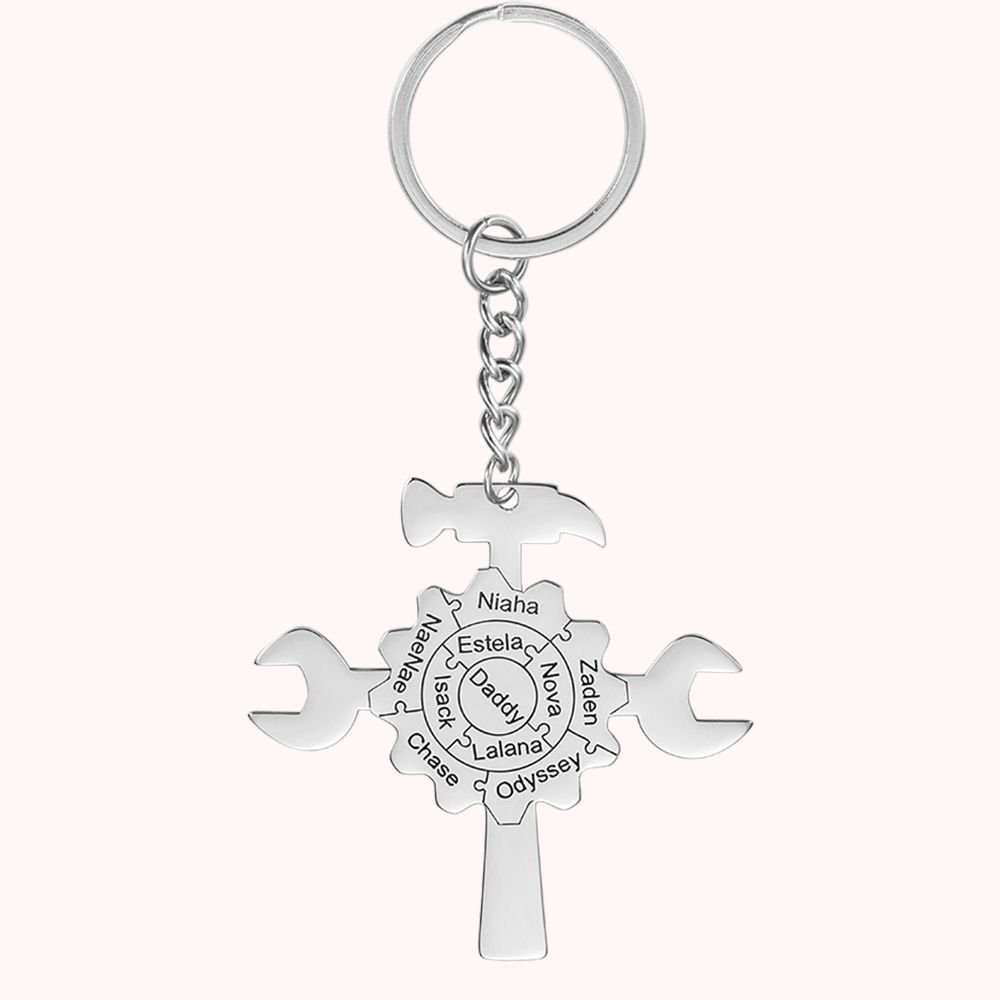 • Les marteaux, les clés, les formes d'engrenages et les pièces de puzzle signifient que tout le monde fait partie de la famille. Le porte-clés de puzzle personnalisable peut choisir entre 1 et 15 pièces de puzzle, et le nom sur chaque pièce de puzzle peut être personnalisé pour représenter chaque membre de la famille. Il peut être porté en toute occasion et ce sera un excellent cadeau pour la fête des pères, Thanksgiving et d'autres jours importants.