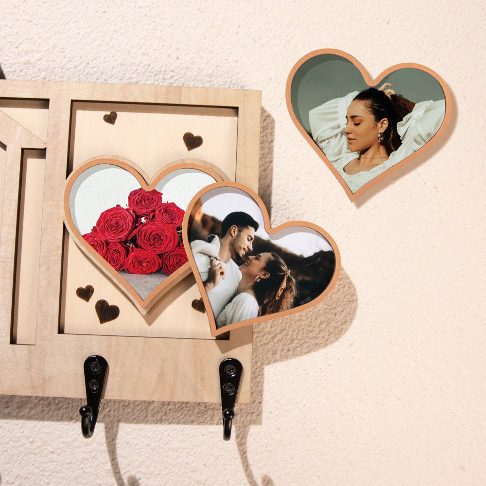 Fabriqués dans une charmante forme de maison, nos crochets porte-clés vous permettent d'ajouter votre nom de famille, la photo de votre animal de compagnie ou toute autre photo personnalisée à l'enseigne. Accrochez-le facilement à l'entrée de votre maison pour lui souhaiter la bienvenue tous les jours. Vous pouvez remplacer et mettre à jour les photos à tout moment, apportant ainsi fraîcheur et joie à votre décoration intérieure.