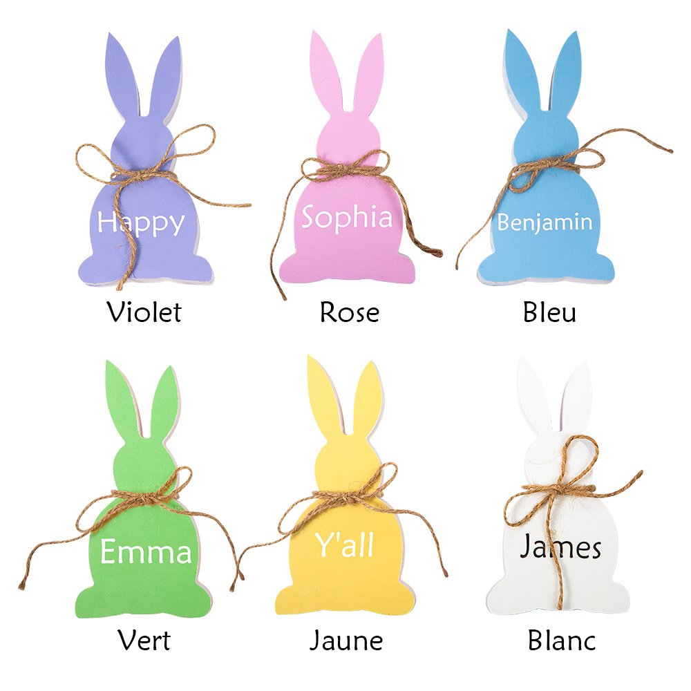 •Les lapins symbolisent un nouveau printemps et une nouvelle vie, un élément typique du jour de Pâques. Le printemps est le début d'une nouvelle année. Toutes sortes de couleurs représentant mieux le printemps. Lapins adorables avec leurs prénoms dessus.