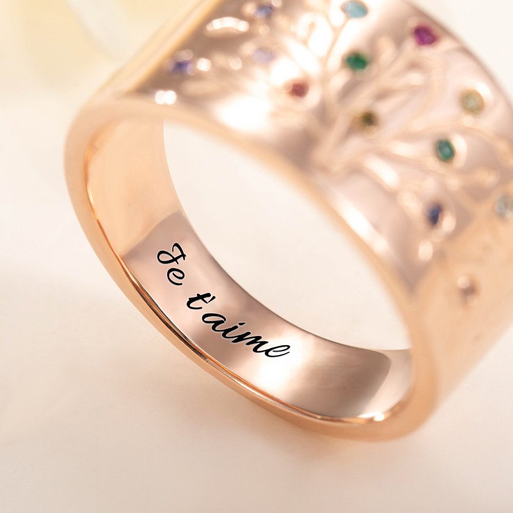 La bague arbre généalogique avec pierre de naissance est luxueuse et peut représenter l'épanouissement de votre famille. L'intérieur peut être gravé avec les mots que vous aimez partager ou vous rappeler, par exemple, la meilleure maman. Il vous suffit de sélectionner les pierres de naissance de tous les membres de la famille. Chacun d'entre eux a une pierre de naissance unique. Pouvez-vous vous souvenir de tous leurs anniversaires ?