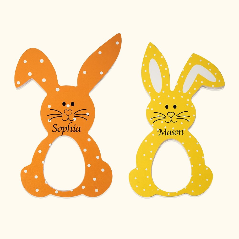 •Super mignon, lapin de Pâques avec des oreilles personnalisé, avec un ventre évidé adorable et multifonctionnel. Deux styles et six couleurs au choix, bleu, rose, jaune, violet, vert, orange, et chaque lapin gravé d’un prénom. En même temps, il peut contenir Kinder Egg, qui n'est pas inclus dans l'emballage lors de l'achat.