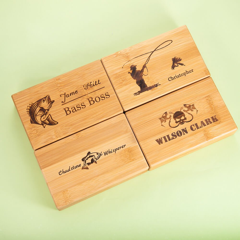 •Boîte de pêche à la mouche conçue pour les personnes qui aiment la pêche, facile à ranger et retrouver leurs hameçons. Matériau en bambou, les gravures de photos et d'inscriptions délicates ajoutant un ton unique au voyage de pêche.
