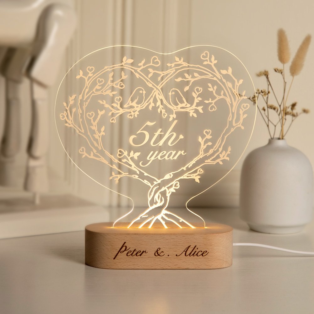 Vous pouvez personnaliser l'anniversaire au milieu de la forme du cœur, et vous pouvez graver votre nom ou votre phrase sur la base en bois. Versez vos sentiments et votre amour dans ce cadeau et offrez-le à votre bien-aimé.