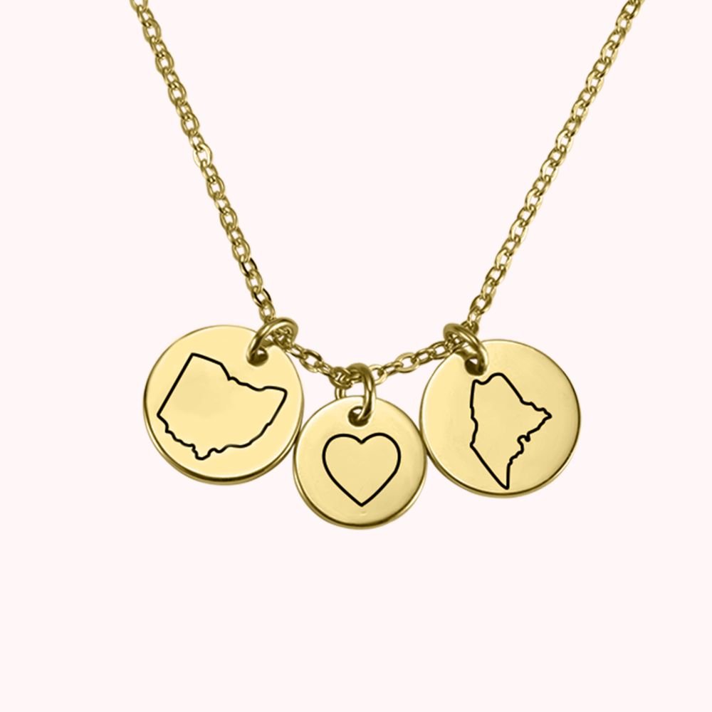 • Deux états liés à un cœur, cadeau parfait pour le meilleur ami ou l'amant. Gravure de la carte des états montrant l'unicité de vous deux.