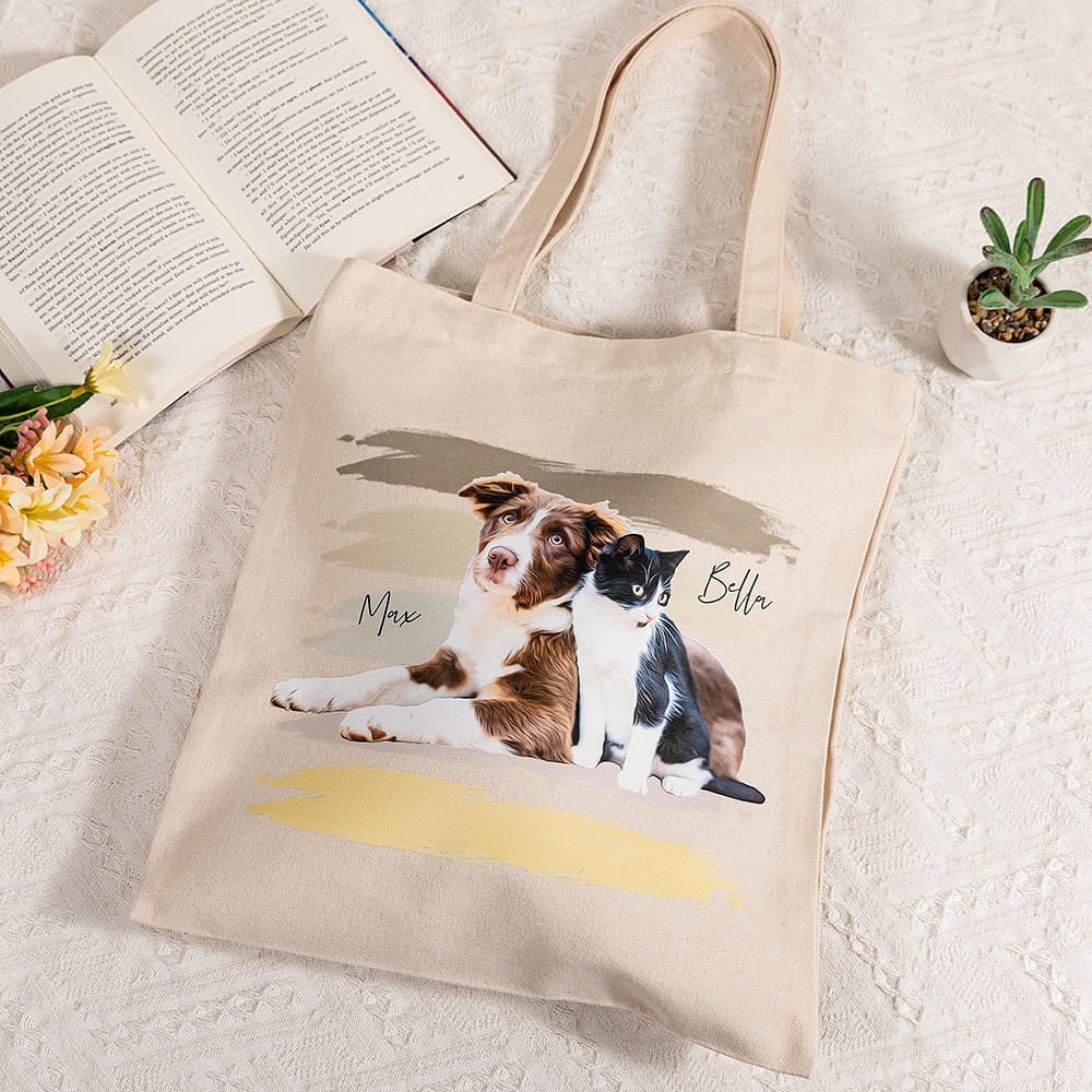 Les sacs fourre-tout avec portrait d'animal sont l'accessoire parfait pour les amoureux des animaux. Avec un portrait personnalisé de votre ami à fourrure imprimé sur le devant, vous pouvez fièrement montrer votre adoration où que vous alliez. Ce fourre-tout unique et accrocheur est un excellent moyen d'engager la conversation et de garder votre animal de compagnie près de votre cœur.