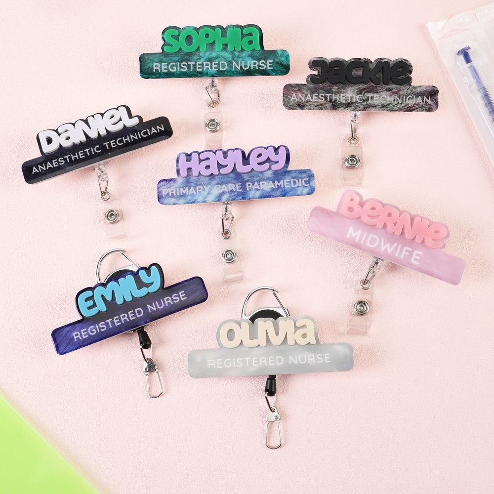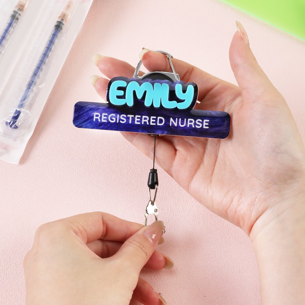 Fabriqué en acrylique de haute qualité, l'enrouleur de badge est résistant aux rayures et conçu pour résister à une utilisation quotidienne dans des environnements cliniques très fréquentés. La surface lisse et imprimée conserve les détails du texte, tandis que le cordon rétractable robuste permet d'accéder facilement aux cartes d'identité. Il allie durabilité et légèreté pour une utilisation tout au long de la journée.