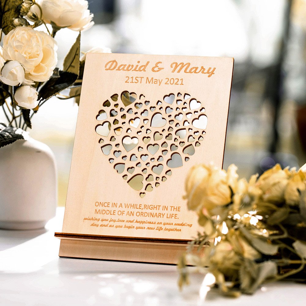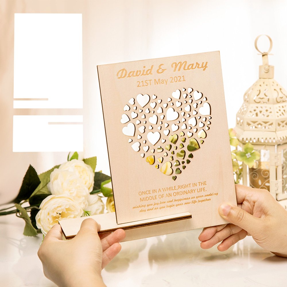 • Personnaliser comme vous le souhaitez : Vous pouvez personnaliser le nom des mariés, la date du mariage et un mot doux.