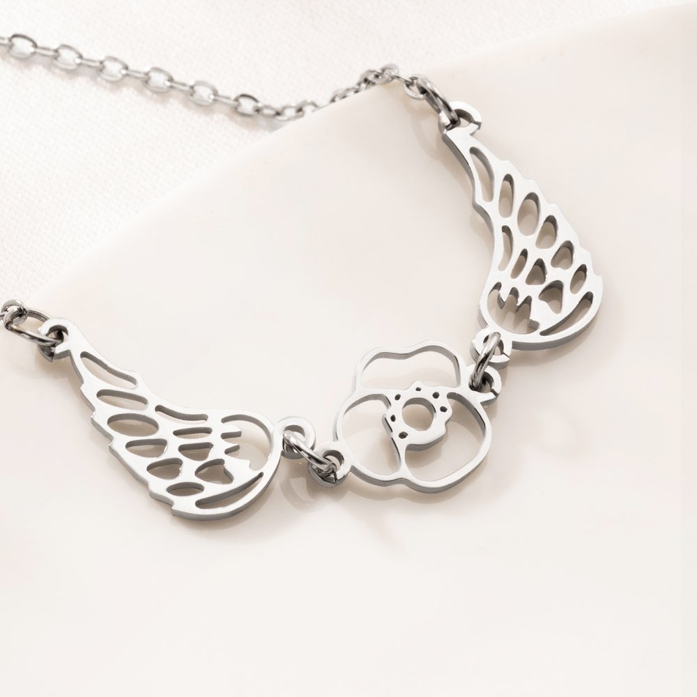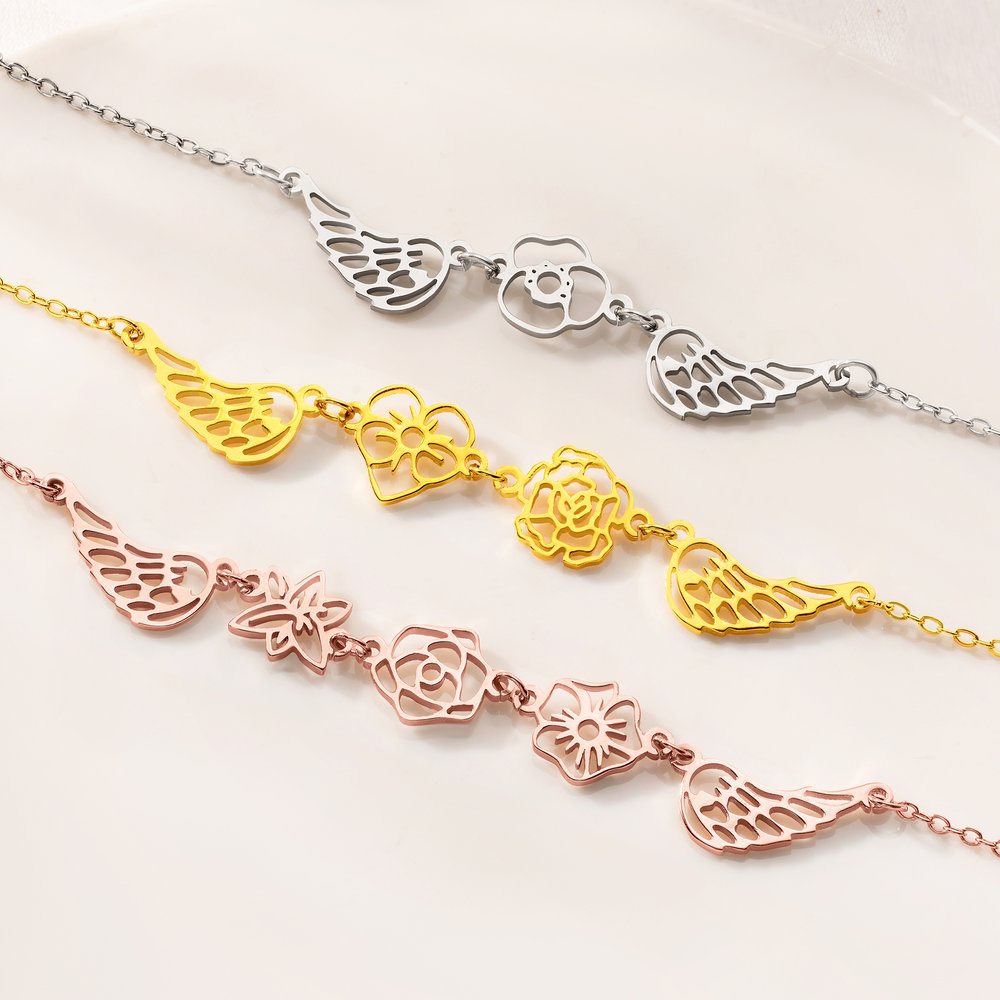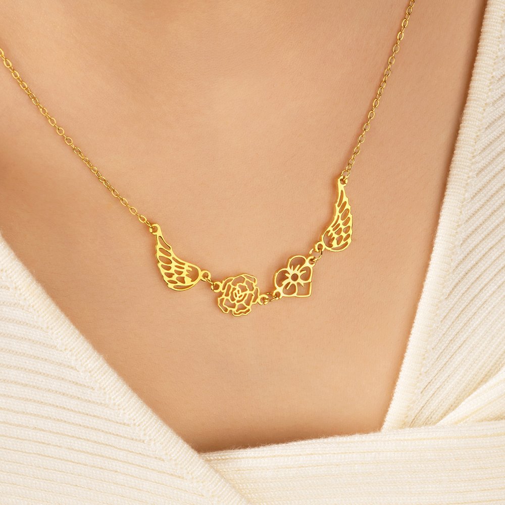 Il allie le symbolisme céleste (les ailes d'ange, un hommage aux êtres chers disparus) aux fleurs de naissance. Les utilisateurs sont attirés par la possibilité de personnaliser les fleurs de naissance pour eux-mêmes ou pour leurs proches, transformant ainsi le collier en un symbole commémoratif profondément personnel. Ce mélange de touche personnelle, de qualité et de souvenir sentimental trouve un écho chez tous ceux qui recherchent des bijoux qui honorent les souvenirs et racontent une histoire d'amour et de perte.