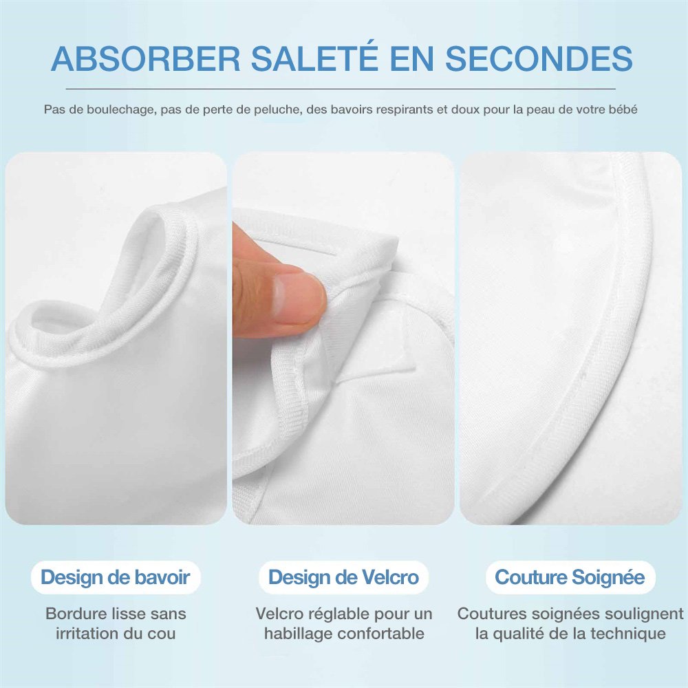 Nous comprenons que l'heure des repas peut être salissante, surtout avec les petits. C'est pourquoi ce bavoir est fabriqué avec un tissu Oxford imperméable et facile à nettoyer, pour que les éclaboussures et les taches ne soient plus un problème. La fermeture velcro réglable au niveau du cou offre un ajustement sûr et confortable, permettant de l'enfiler et de l'enlever facilement tout en gardant votre bébé propre et sec.