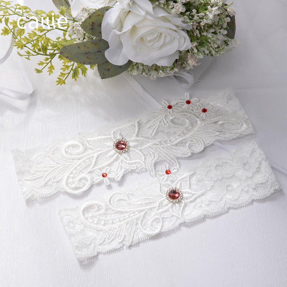 Les jarretières de mariage sont ornées de pierres de naissance, et vous pouvez choisir différentes couleurs de pierres de naissance en fonction de votre mois de naissance pour ajouter une touche personnelle à cette jarretière.