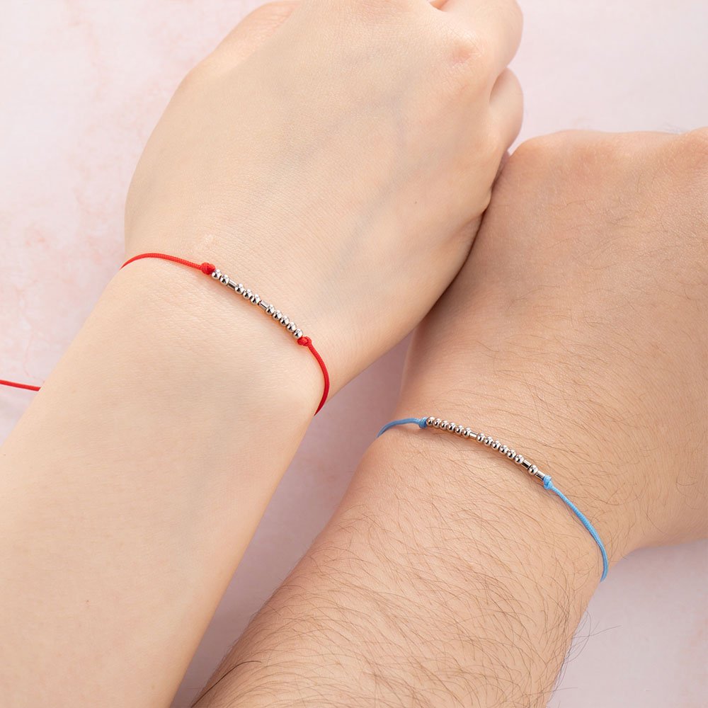 Fabriqué en argent sterling 925 et en fil de nylon, le bracelet Morse est imperméable, doux pour la peau, durable et confortable pour un usage quotidien.