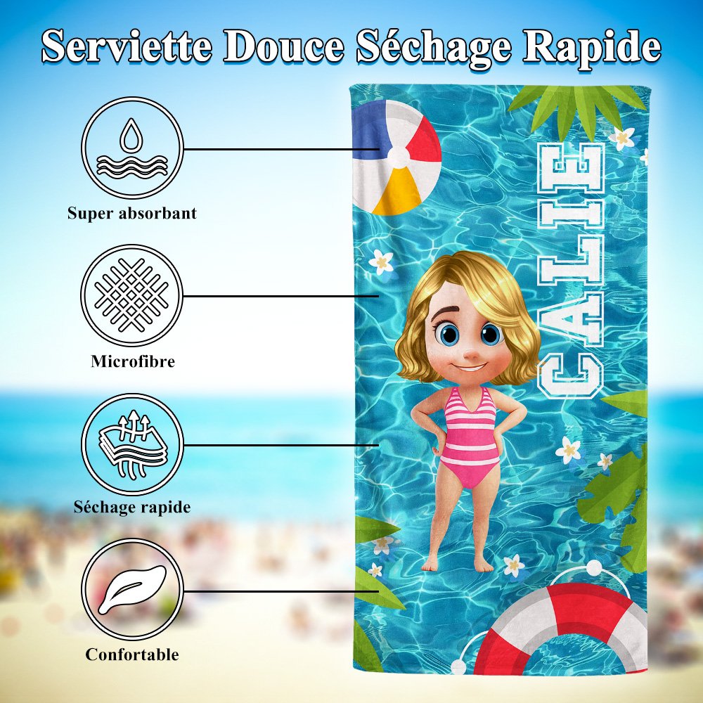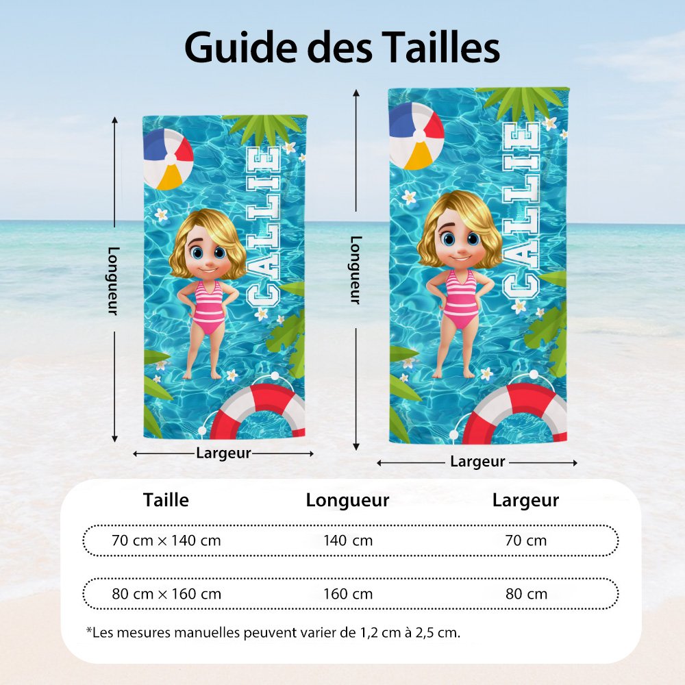 Cette serviette de plage présente un motif vivant de personnages de dessins animés en 3D sur fond de piscine, apportant une touche d'amusement et de joie à vos activités aquatiques estivales. Vous pouvez choisir parmi différents motifs de personnages 3D adorables, selon vos préférences, et les personnaliser avec votre nom ou un texte spécial, ce qui fait de cette serviette un article personnel unique.