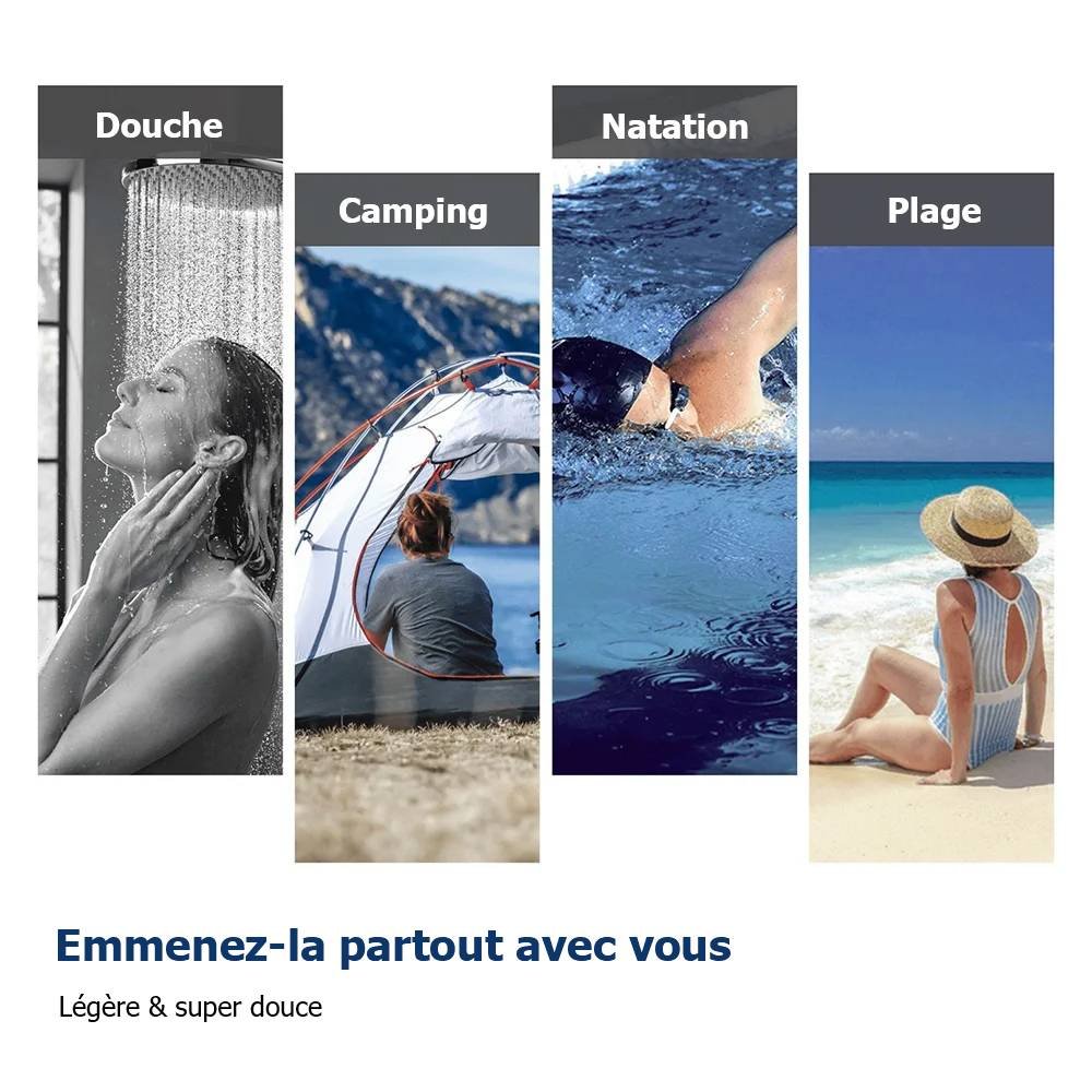 Légère et très absorbante, cette serviette de plage sèche beaucoup plus rapidement que les options conventionnelles. Ses propriétés exceptionnelles d'évacuation de l'humidité et de séchage rapide vous permettent de rester frais. Remarquablement légère, elle se plie sans effort pour être facilement transportable, ce qui la rend idéale pour les sorties à la plage ou les activités sportives.