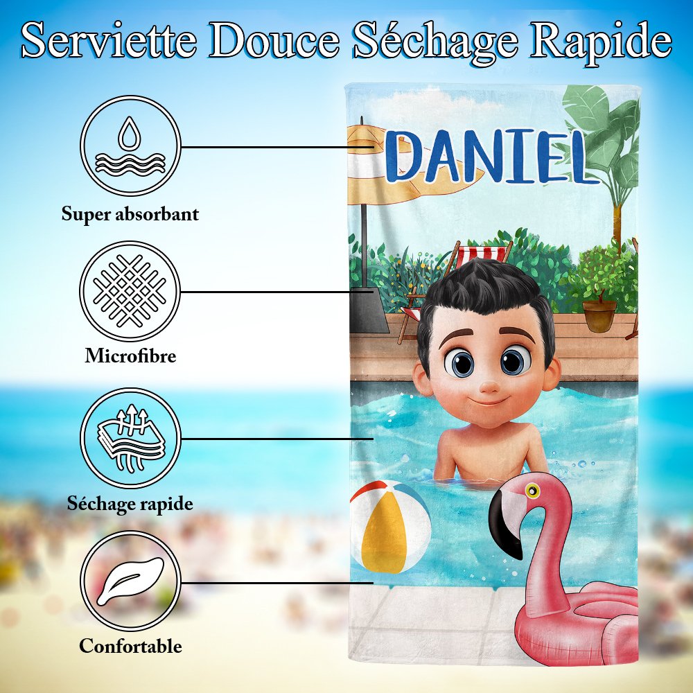 La serviette de plage est un cadeau idéal pour les anniversaires, Noël ou d'autres occasions spéciales. C'est un cadeau idéal pour tous les enfants qui veulent se démarquer pendant les activités estivales. La conception du personnage de dessin animé en 3D est remplie d'amusement et de joie enfantine, s'alignant sur la nature innocente et insouciante des enfants tout en ravivant l'enfant intérieur chez les adultes. Que ce soit pour un usage personnel ou comme cadeau, cette serviette de plage personnalisée apportera beaucoup de joie estivale et d'expériences inoubliables.