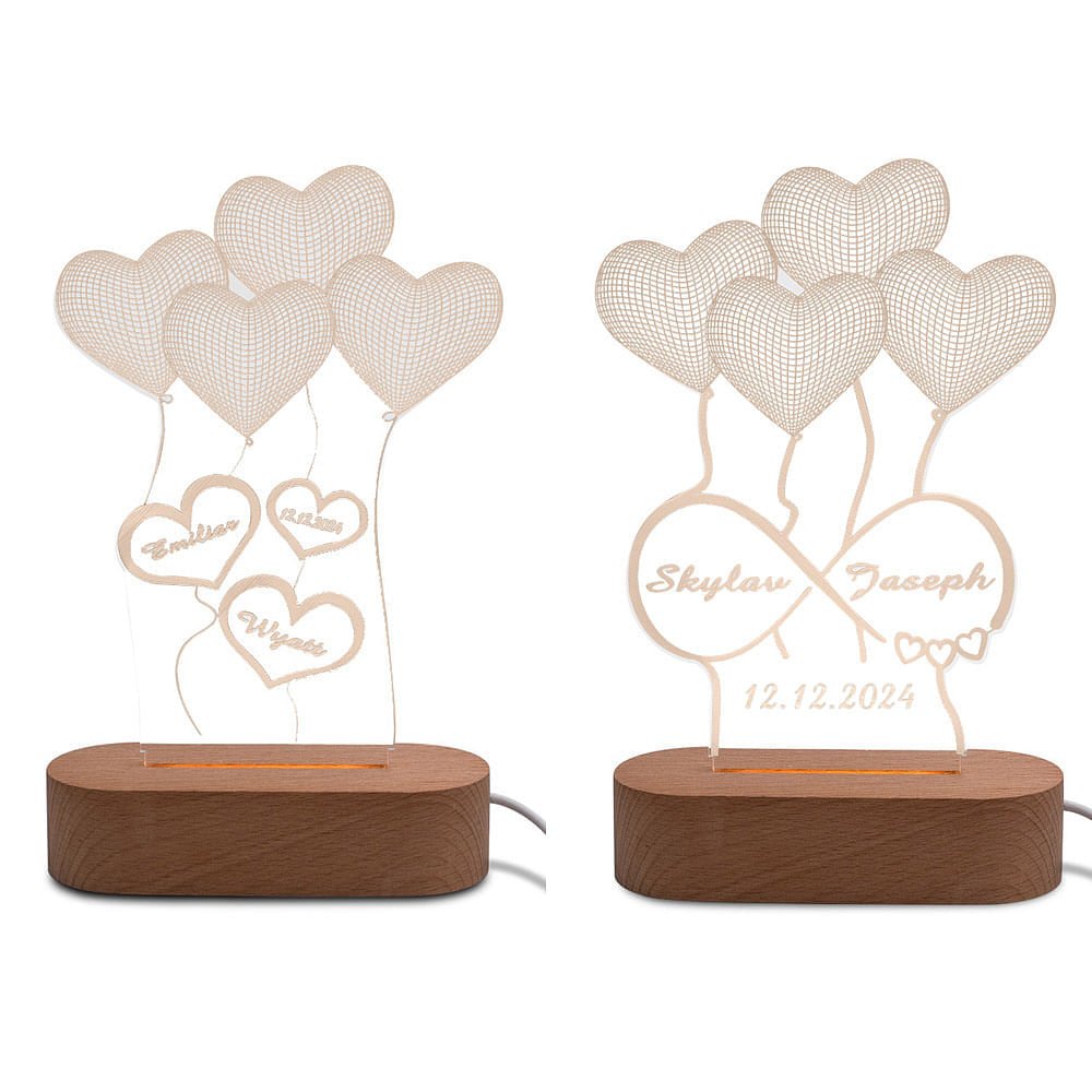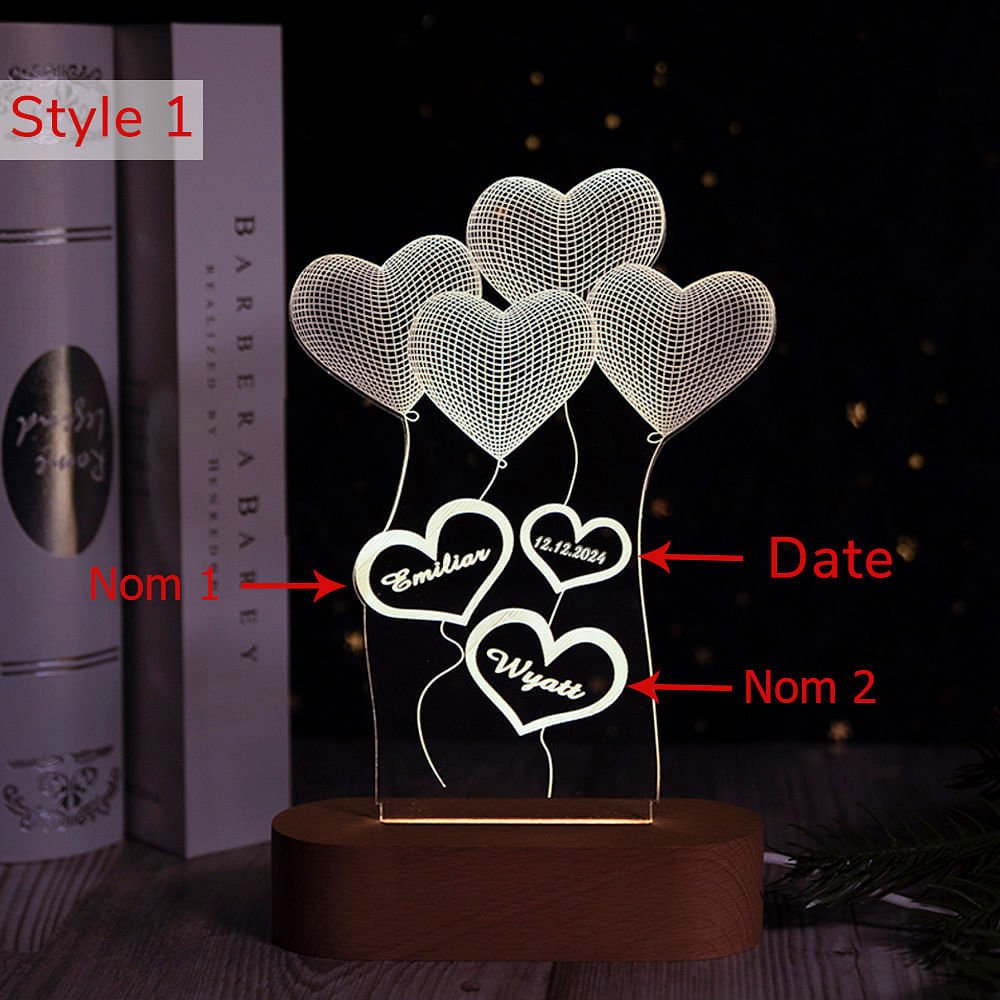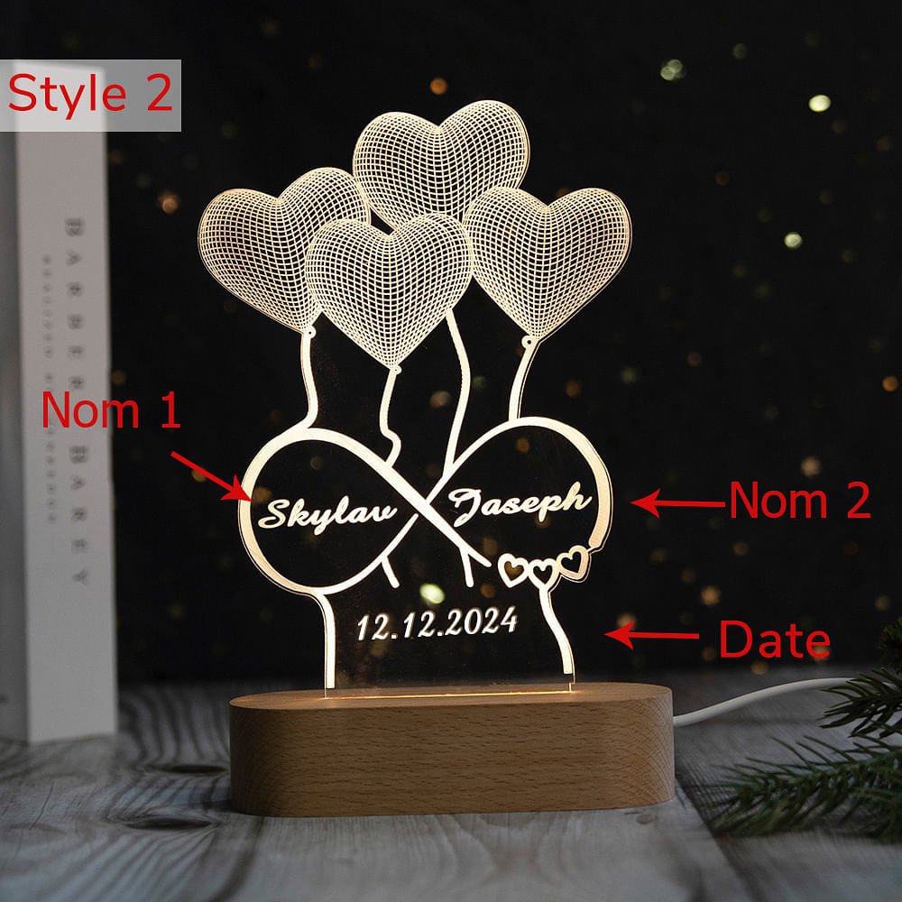• Conçue pour le doux soin des membres de la famille lorsqu'il/elle se lève tard la nuit. Lumière chaude aidant votre famille à voir autour en cas de chute. Support en bois aux lignes épurées posé en toute stabilité sur la table. Les prénoms et les dates sur la lampe aidant à rappeler du moment spécial entre vous.