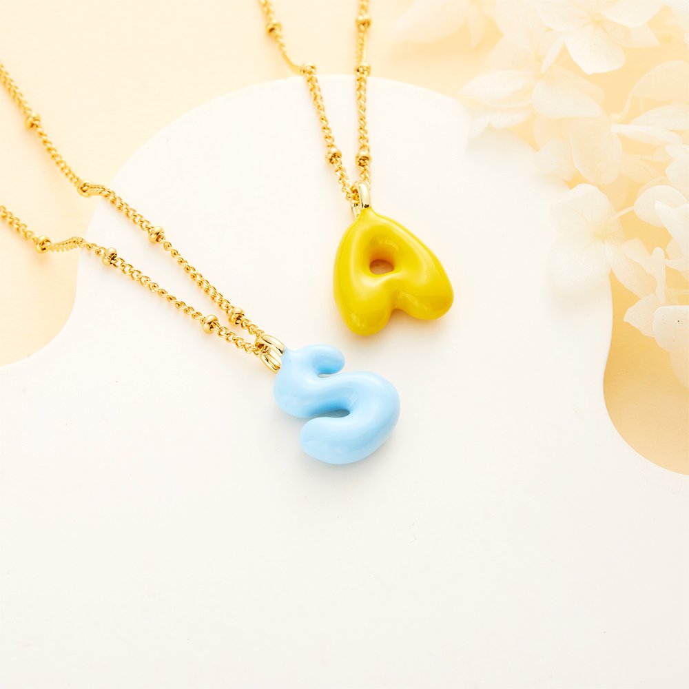 Ce collier simple est orné de jolis pendentifs en forme de lettres. La lettre entière utilise une police de caractères à bulles très mignonne, et l'effet 3D est très fort. Vous pouvez personnaliser ce collier avec ses initiales pour lui donner plus de sens.