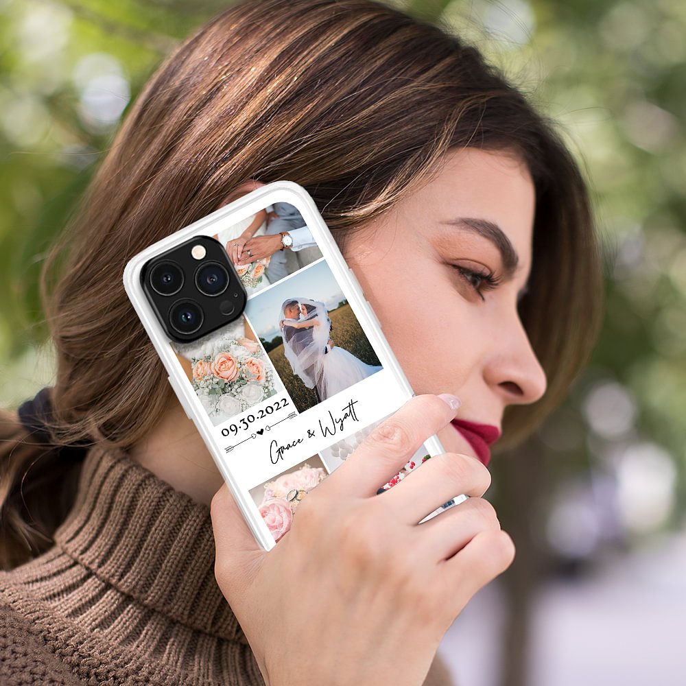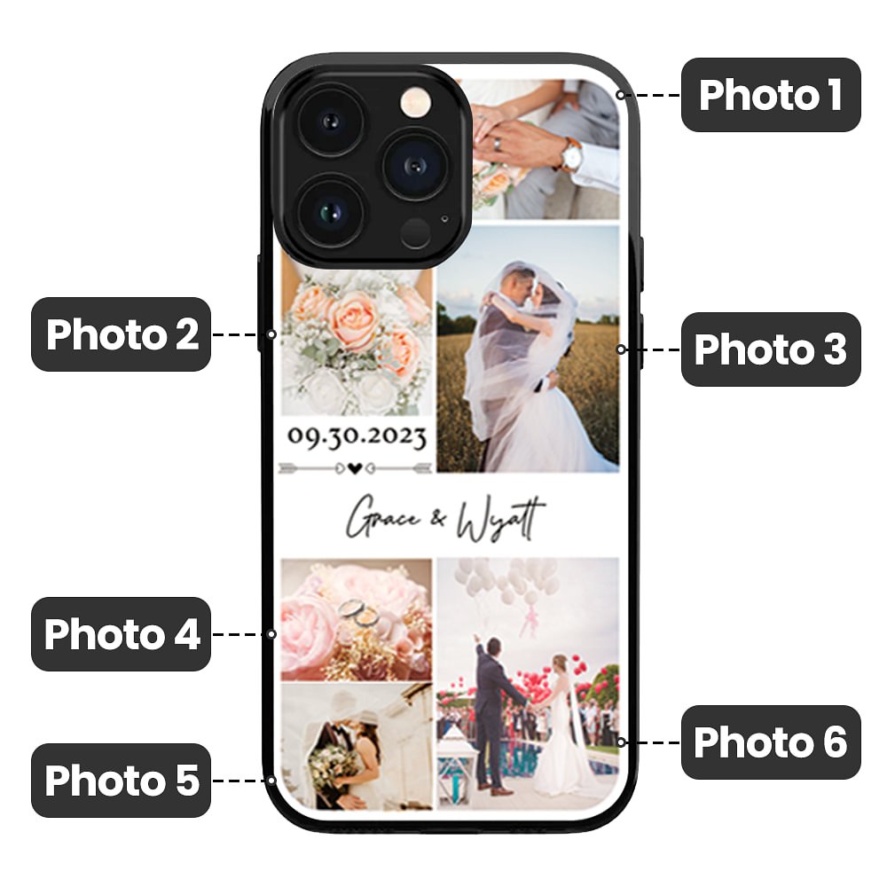 Immortalisez le magnifique voyage de votre histoire d'amour avec notre étui personnalisé pour iPhone "6 Photos Collage". Cet étui bien pensé vous permet de présenter six moments précieux, immortalisant ainsi vos souvenirs spéciaux. Personnalisez-le avec vos noms et une date importante, créant ainsi un souvenir unique et précieux.