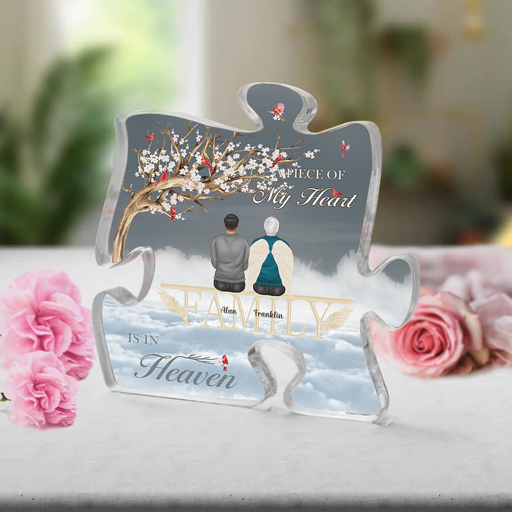Le message "Un morceau de mon coeur est au paradis/un morceau de nos coeurs est au paradis" est magnifiquement imprimé sur l'ornement. Il vous rappellera les moments heureux que vous avez partagés avec vos proches et la joie qu'ils ont apportée dans votre vie.