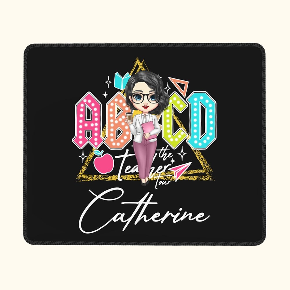 This mouse pad is printed with the words "ABCD Teacher Tour" and teaching elements, apple, ruler, and book, neon retro style makes it eye-catching and stunning. You can create a teacher's cartoon image and name to express your deep affection for them.