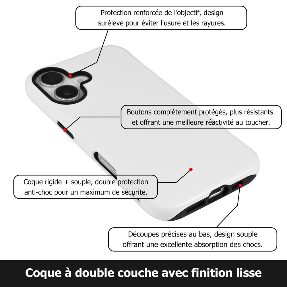 Fabriqué en plastique PC et TPU de haute qualité, cet étui présente une structure bicouche robuste qui protège efficacement votre téléphone de l'usure quotidienne et des chocs, pour une utilisation en toute sérénité. L'étui est agréable à tenir et ses dimensions précises garantissent un ajustement parfait à votre téléphone, avec des ouvertures pour le chargement et les boutons qui offrent une protection pratique.