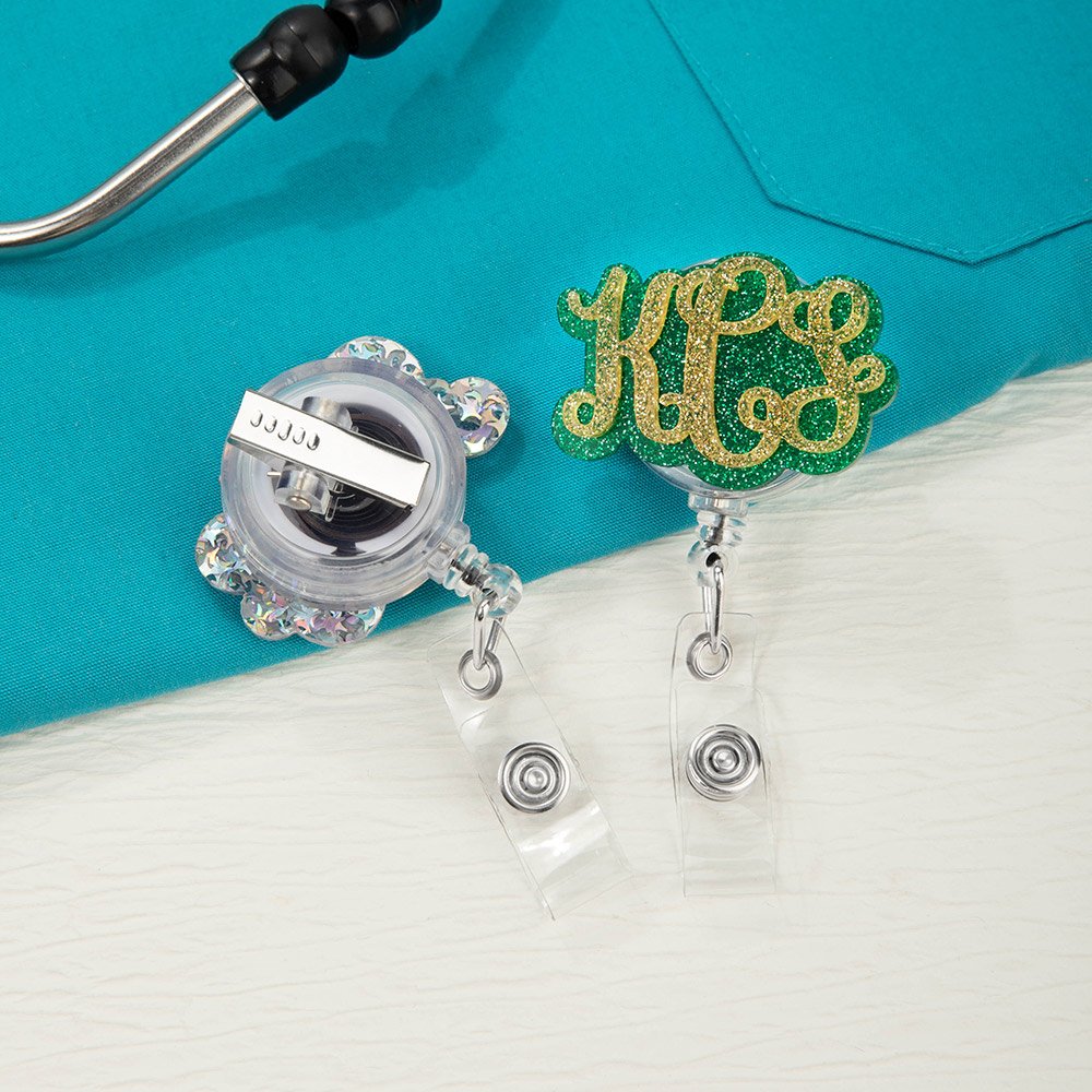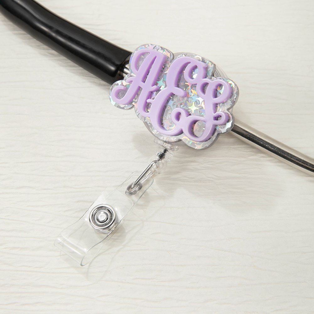 Ce modèle présente une personnalisation par monogramme sur un acrylique de haute qualité ; plusieurs couleurs sont disponibles, créant ainsi un accessoire sophistiqué et pratique pour les professionnels de la santé. La personnalisation rehausse la tenue de travail tout en préservant le professionnalisme.