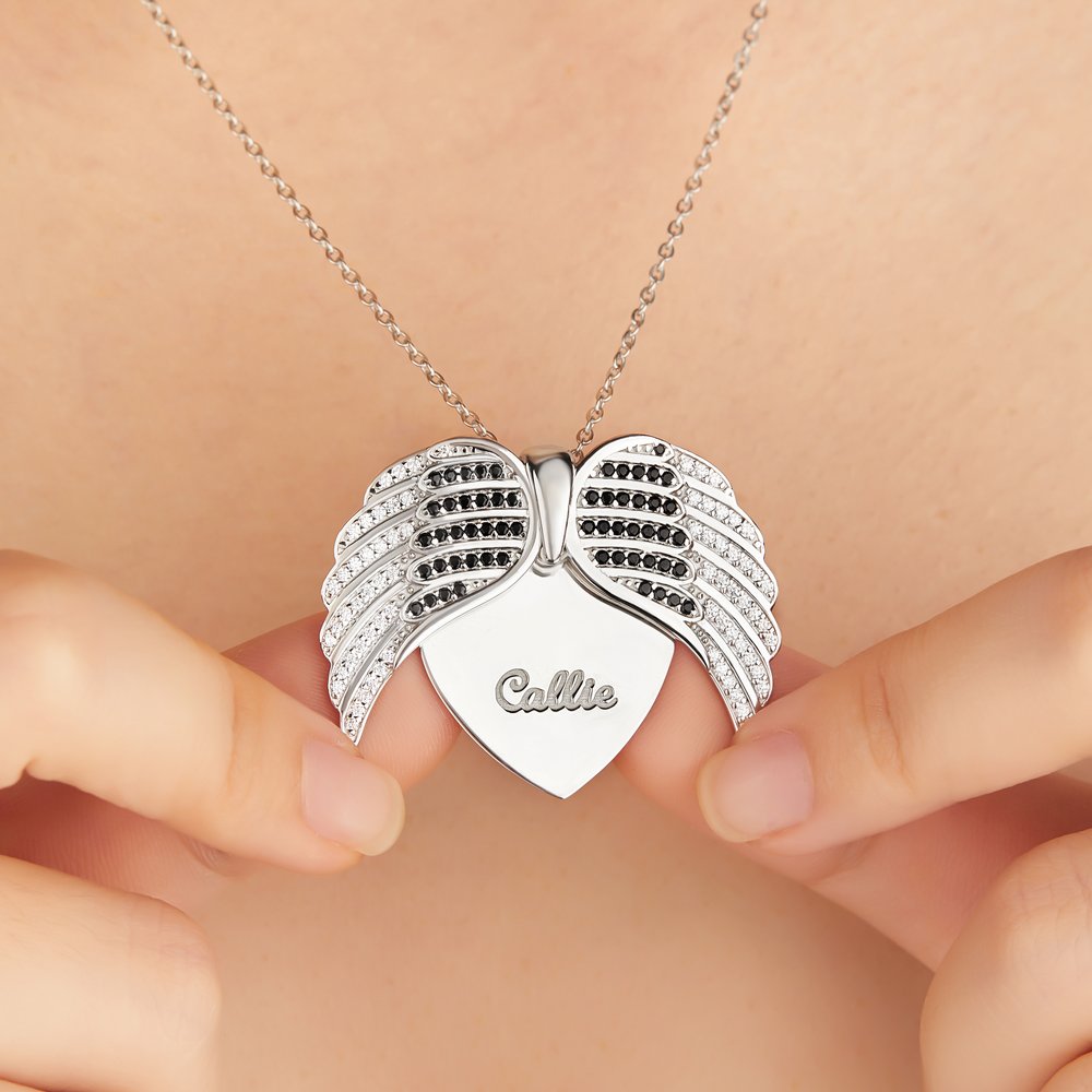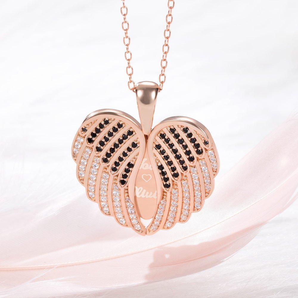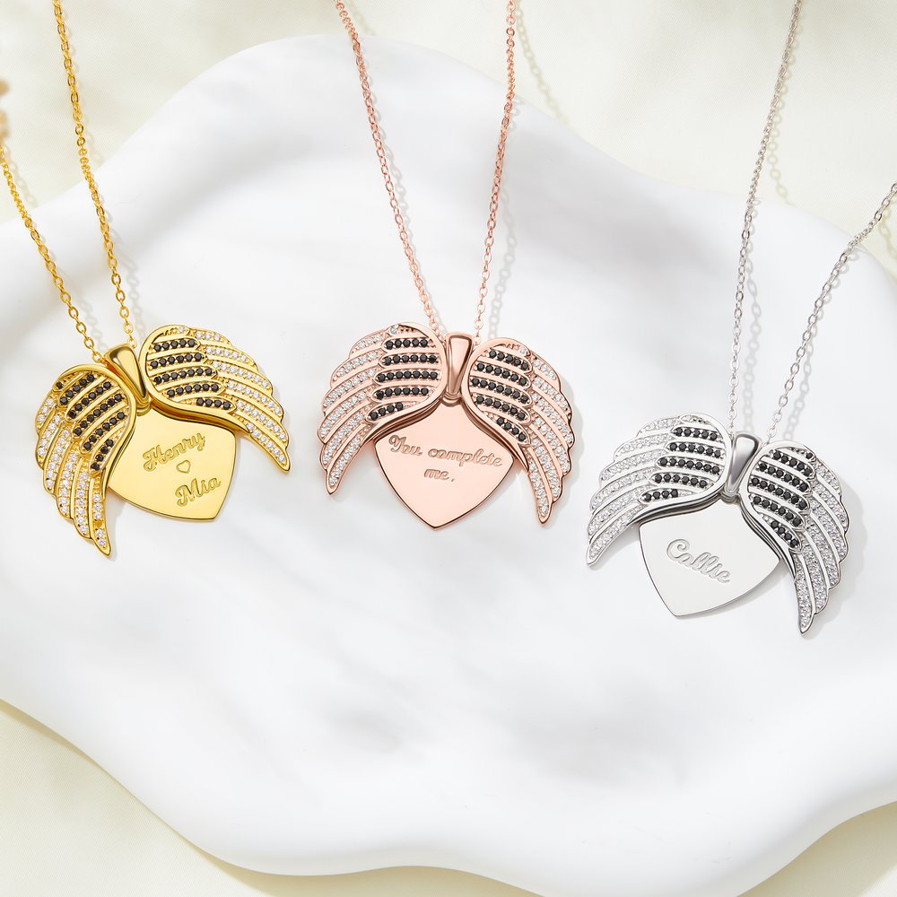 Nous vous donnons la liberté de laisser libre cours à votre créativité. Les ailes du pendentif du collier s'ouvrent sur votre nom personnalisé, et vous pouvez y laisser votre nom et celui de votre proche, faisant de ce collier un symbole unique des sentiments que vous éprouvez l'un pour l'autre. Ce design personnalisé fait également de ce collier un bijou très émouvant.
