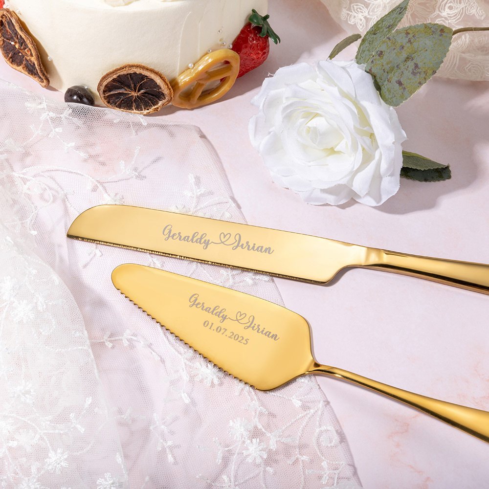 Ce service à découper le gâteau se distingue par la possibilité de graver le nom du couple et la date sur la surface. Cette personnalisation ajoute une touche sincère et transforme le service en un souvenir précieux qui commémorera à jamais leur journée spéciale. Chaque fois qu'ils utiliseront cet ensemble pour couper leur gâteau d'anniversaire ou célébrer des étapes importantes, il leur rappellera leur amour et leur engagement.