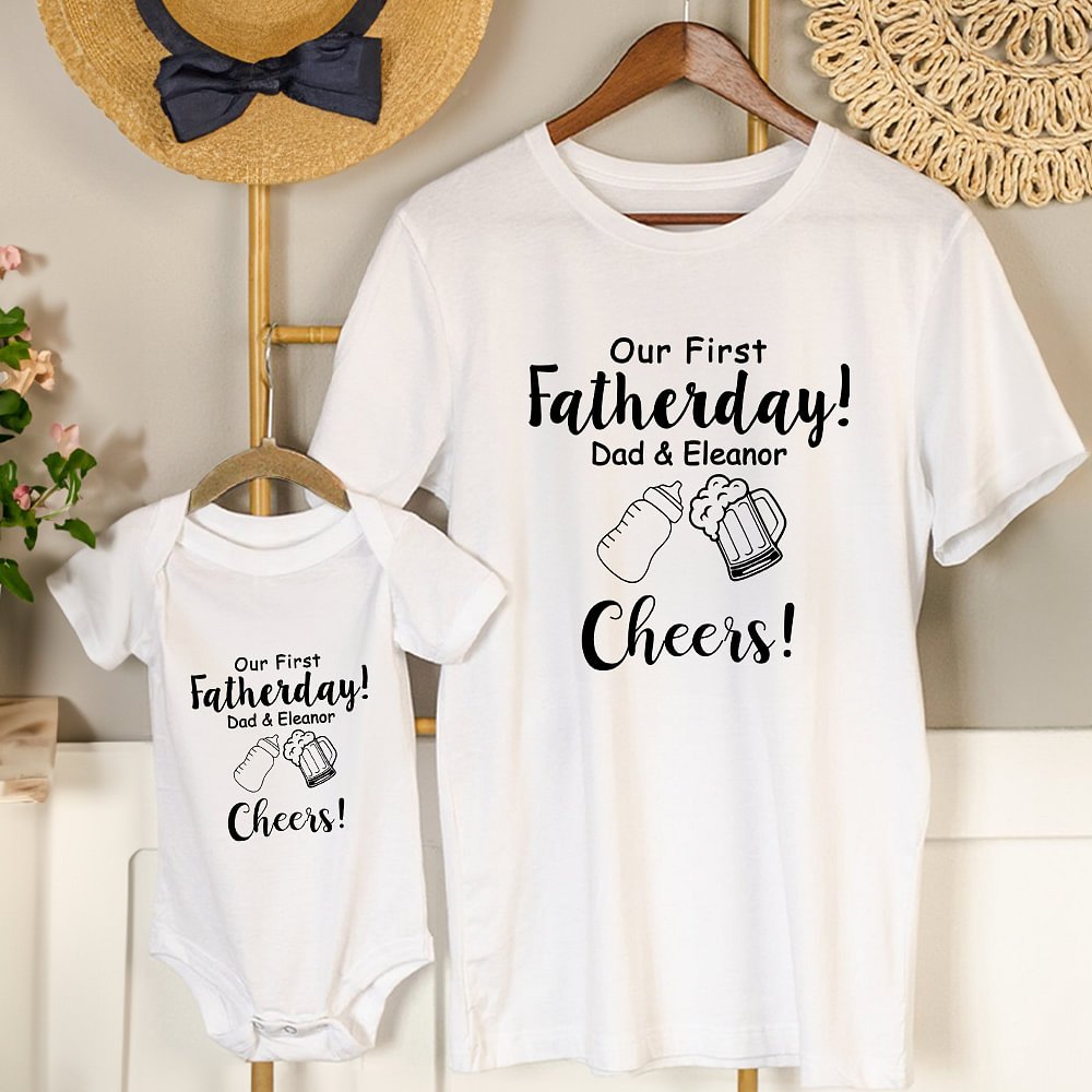 Onesie T-shirt Personnalisé avec Nom Papa et Bébé Thème Our First Fatherday Cadeau Fête des Pères Anniversaire pour Nouveau Papa Bébé