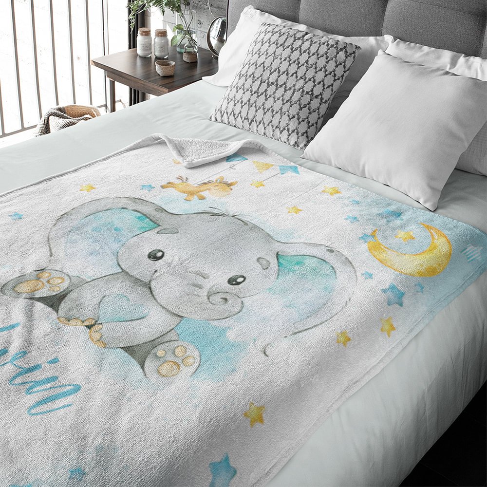 Cette couverture ne se contente pas d'apporter chaleur et confort, elle constitue également un superbe élément de décoration intérieure. Le charmant motif de bébé éléphant, associé au nom personnalisé, ajoute instantanément une touche fantaisiste à toute chambre d'enfant ou salle de jeux. Sa palette de couleurs neutres lui permet de se fondre dans n'importe quel thème de décoration intérieure et de convenir aussi bien aux garçons qu'aux filles.