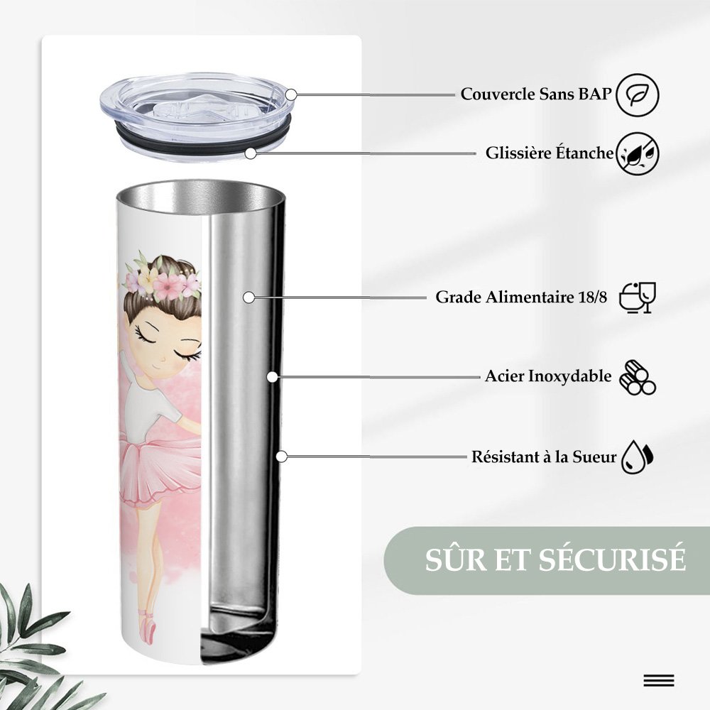| Caractéristiques: | Léger, à la mode et à l'aspect novateur, la technologie d'isolation sous vide maintient la température des boissons pendant une longue période, avec paille, thème ballet. |