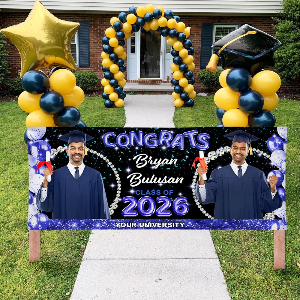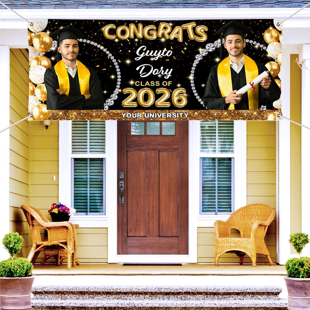 Le grand format crée une présence impressionnante, rehaussant instantanément le sens de l'occasion, que ce soit lors de la cérémonie de remise des diplômes, d'une fête à la maison ou d'une célébration dans l'arrière-cour. Chaque bannière est personnalisée de manière unique, ce qui permet aux diplômés de poser avec leur famille et leurs amis devant la bannière, pour immortaliser les sourires et les réussites sur une photo durable. Elle ajoute une touche personnelle et significative à cette étape importante de la vie.