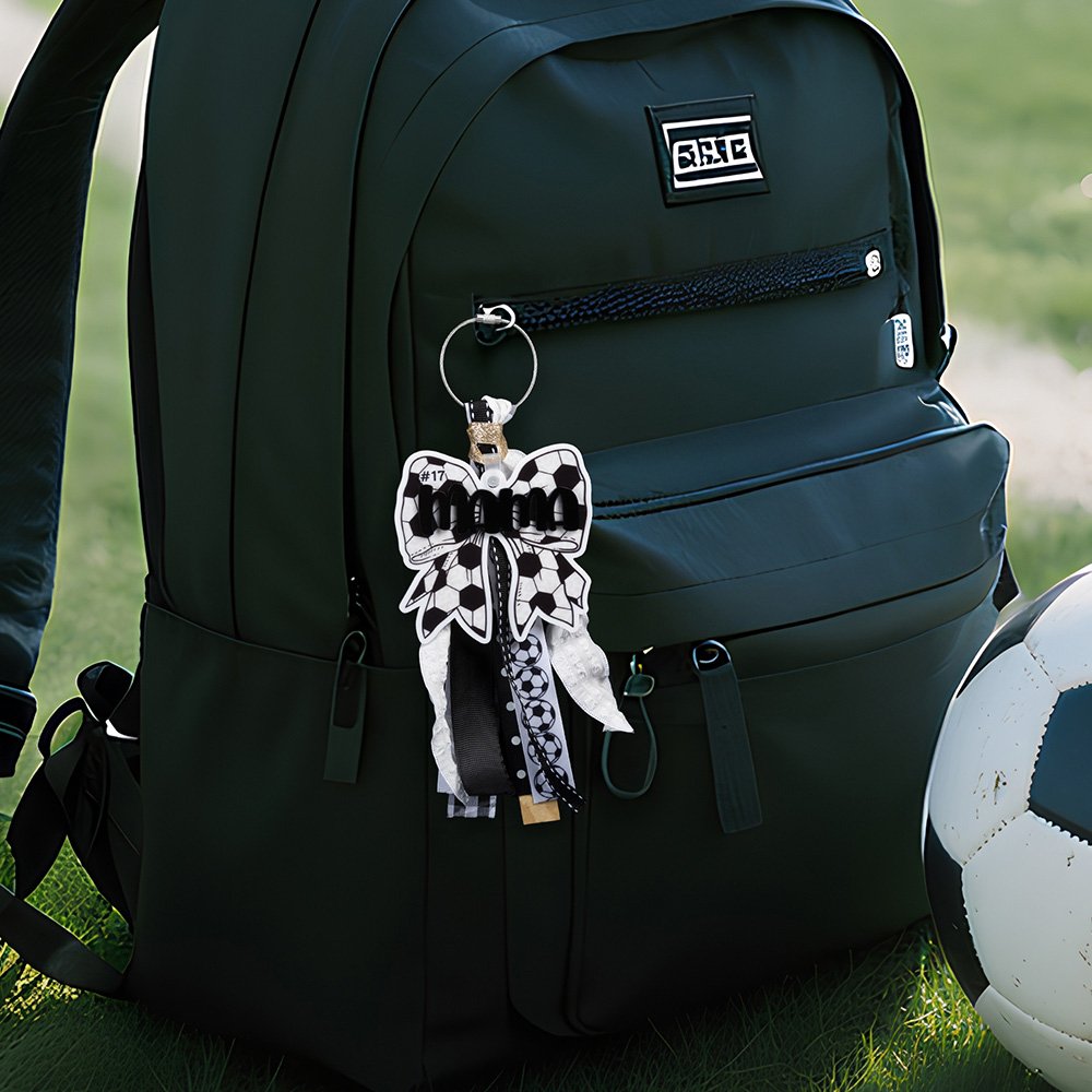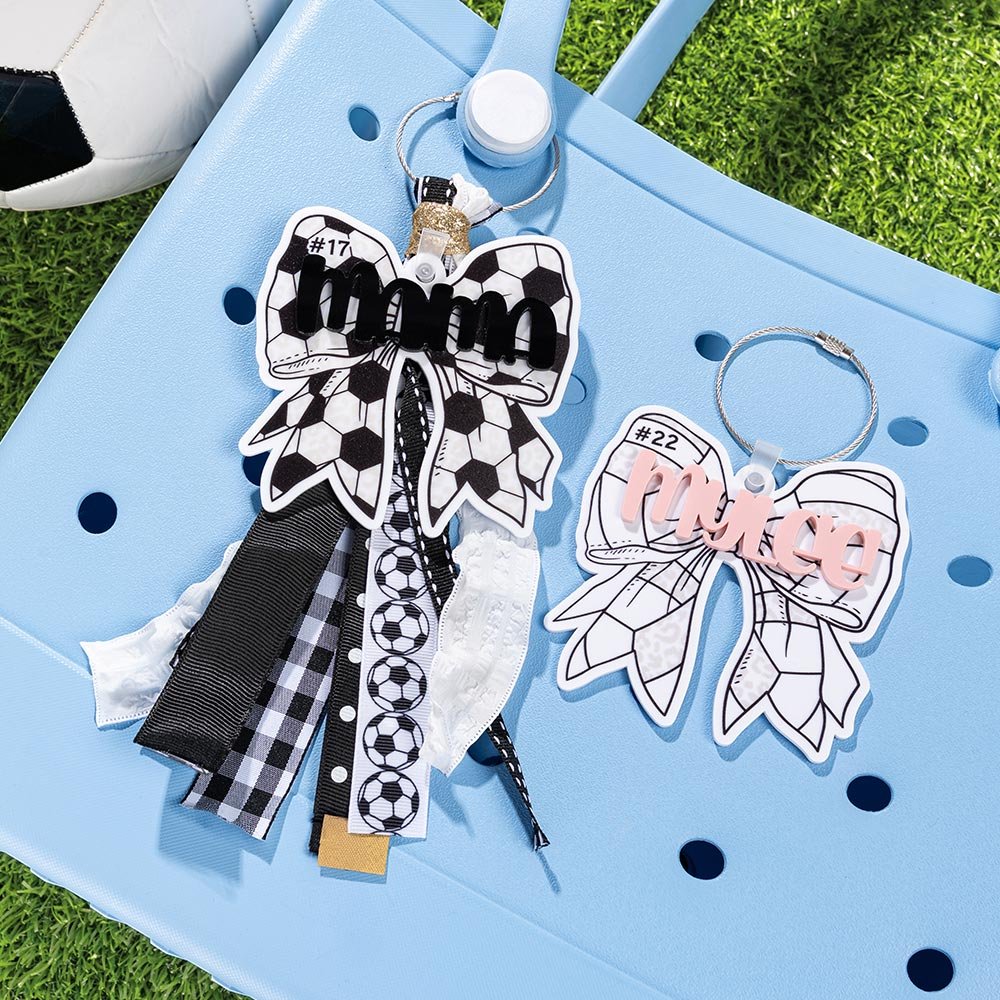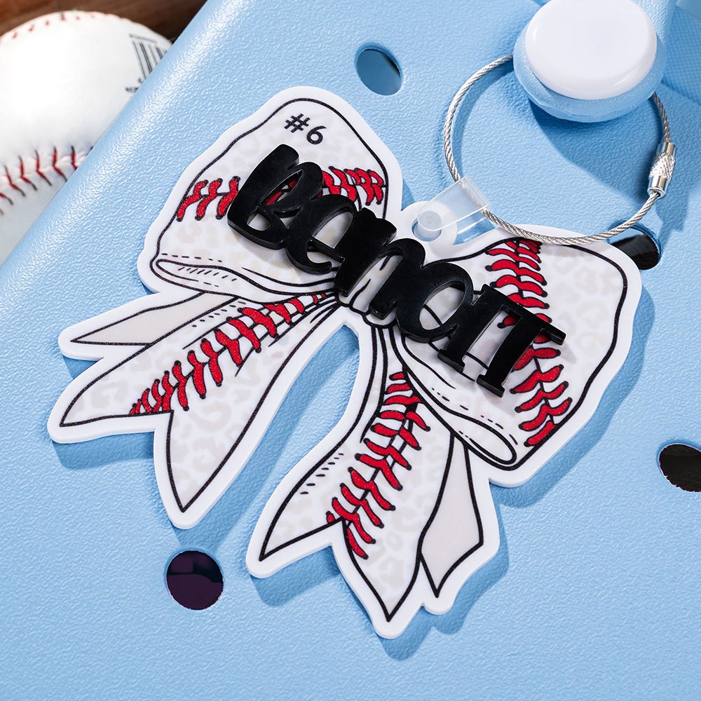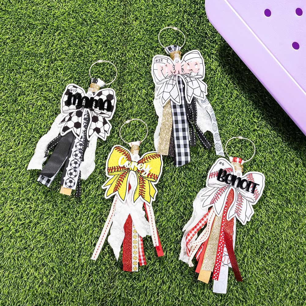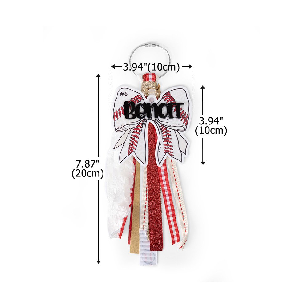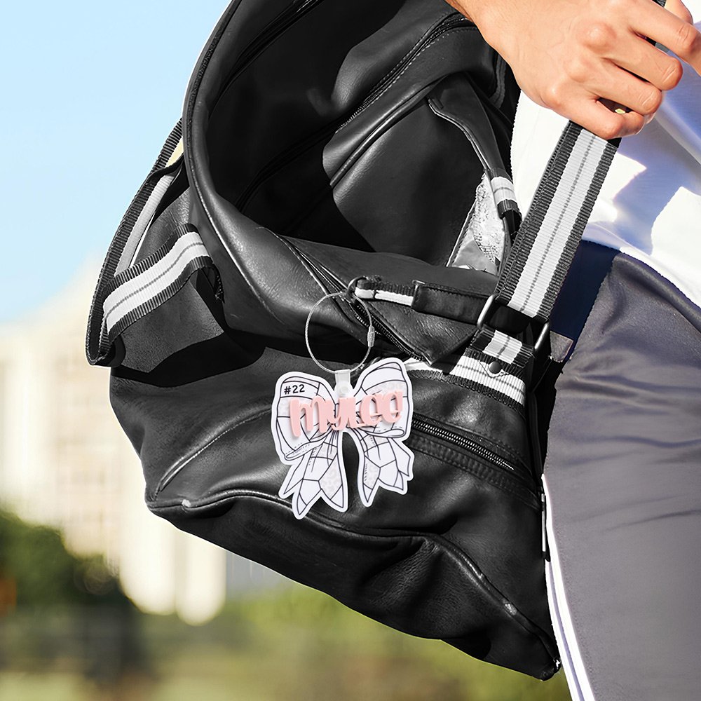 Avec des éléments vibrants de softball, de baseball, de volleyball ou de football, cette étiquette sportive en forme de nœud est un joli accessoire pour votre sac. Elle est entièrement personnalisable avec votre nom et votre numéro de maillot. Disponible en version avec ou sans pompon, l'étiquette est un moyen élégant d'afficher votre passion pour votre sport préféré.