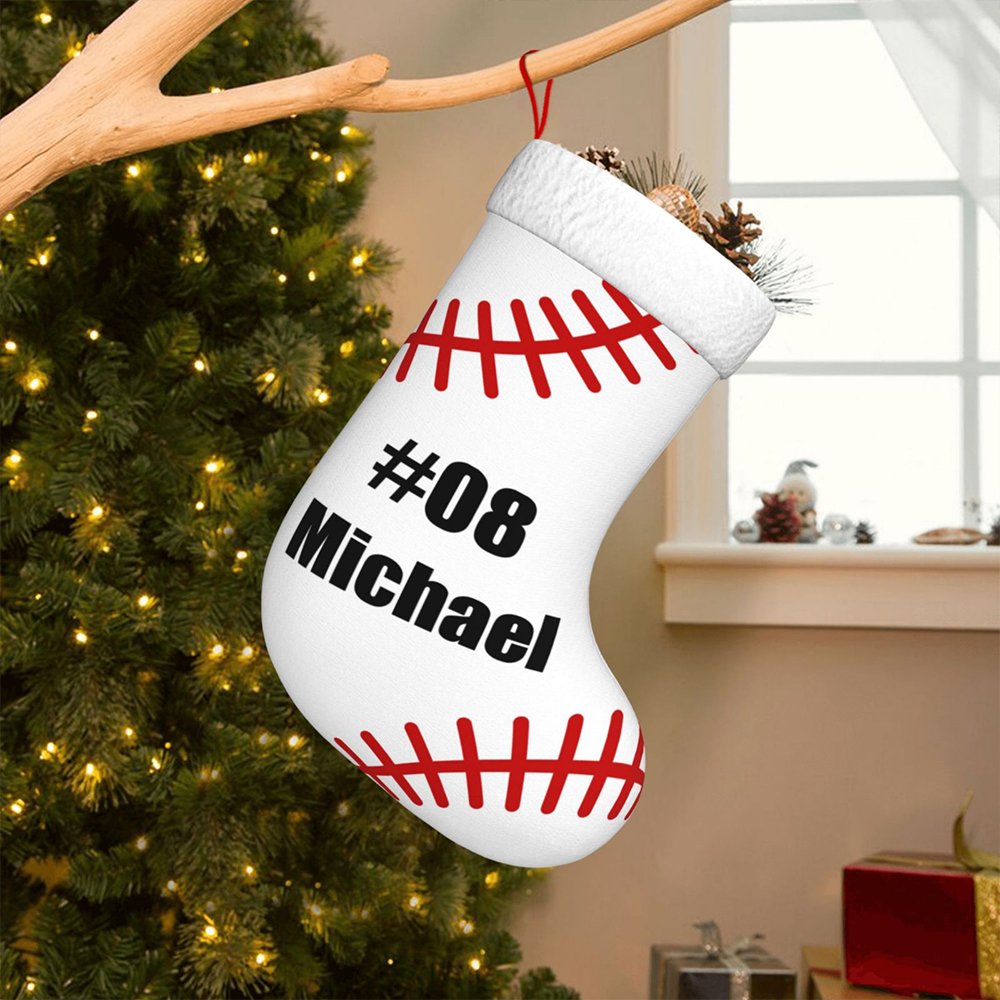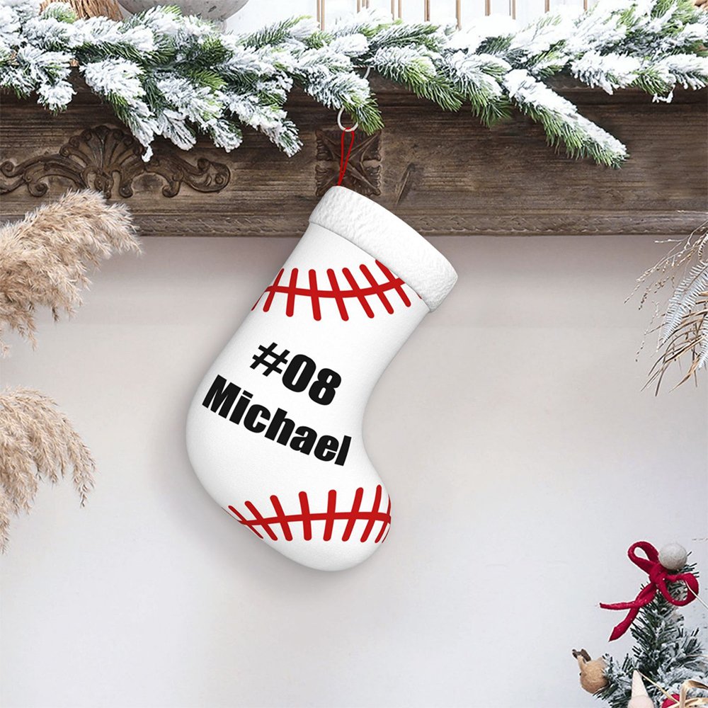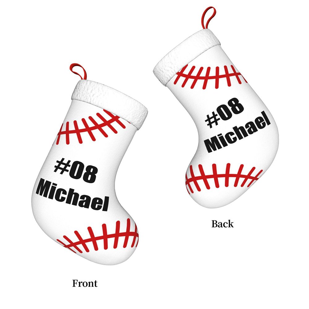 Notre bas de Noël de baseball blanc est orné d'un magnifique motif sur le thème du baseball. La chaussette présente le motif de couture rouge classique que l'on trouve sur les balles de baseball, et peut être personnalisée avec un nom et un numéro sur le devant. L'ajout d'un nom et d'un numéro rend cette chaussette vraiment personnalisée et vous permet de célébrer Noël d'une manière spéciale.