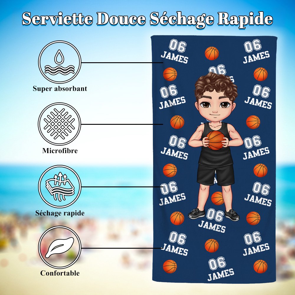 Le design de cette serviette de plage est inspiré du basket-ball, avec des personnages de dessins animés dynamiques et pleins de personnalité. Choisissez parmi 23 couleurs, personnalisez les costumes des personnages en fonction de vos préférences, et ajoutez des numéros et des noms pour un style unique qui vous ressemble.