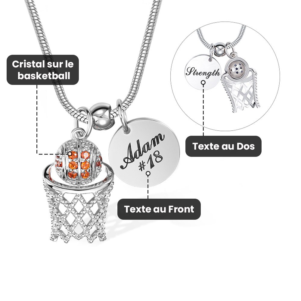 Ce collier de basket personnalisé est un cadeau idéal pour toute personne passionnée par ce sport, qu'il s'agisse d'un joueur, d'un entraîneur ou d'un fan inconditionnel. Il est parfait pour être porté lors de matchs, d'entraînements ou de sorties décontractées. Célébrez les anniversaires, les fêtes ou les occasions spéciales avec ce collier magnifique et distinctif et affichez votre amour du basket-ball avec style.