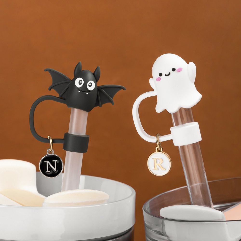 Le dessus du couvercle en paille présente un motif en 3D rappelant les éléments classiques d'Halloween, notamment une citrouille souriante, une chauve-souris battante, un fantôme mignon et un chapeau de sorcière pointu. Les breloques initiales personnalisables font de votre tasse un symbole de fête unique, conférant à vos boissons un caractère riche et festif.