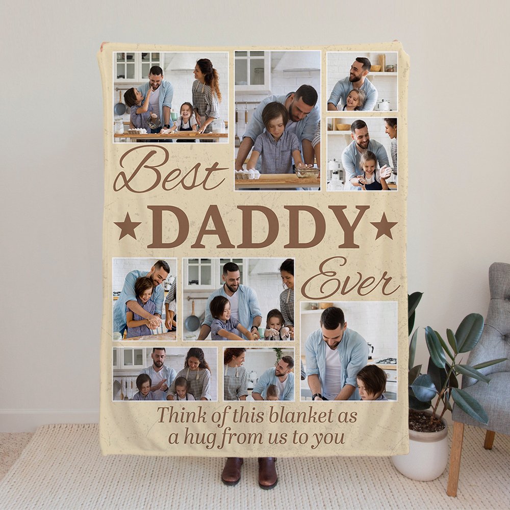 Cette couverture vous permet de la personnaliser avec 9 de vos photos de famille préférées, créant ainsi un collage sincère qui met en valeur de précieux souvenirs. Le titre "Best Daddy Ever" ajoute une touche d'amour, ce qui en fait un cadeau parfait pour célébrer le lien spécial entre un père et sa famille.