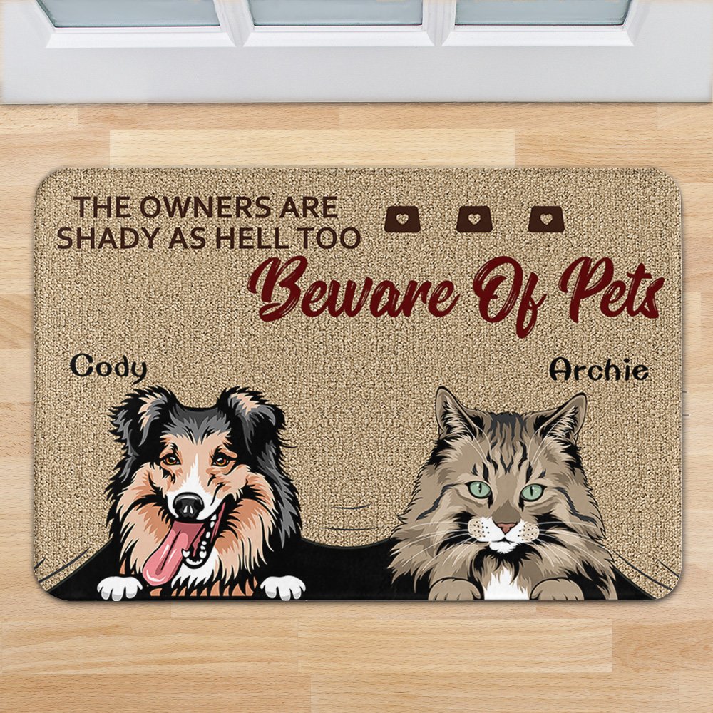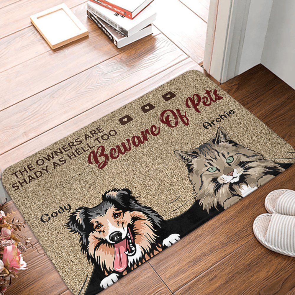 Le message "Beware Of Pets" est joliment imprimé sur le tapis de sol, rappelant aux propriétaires de garder un œil sur leurs animaux.
