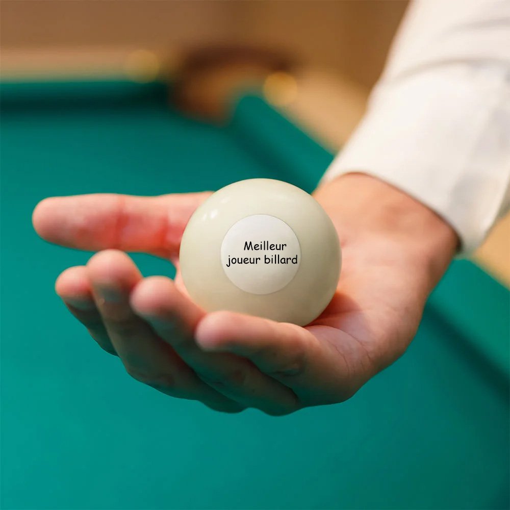 La boule de billard est un accessoire unique pour les amateurs de billard. Avec une zone personnalisée au centre, vous pouvez télécharger une photo personnelle ou une photo avec des amis, et ajouter un texte significatif pour rendre cette boule de billard vraiment unique. Plus qu'une simple pièce de jeu