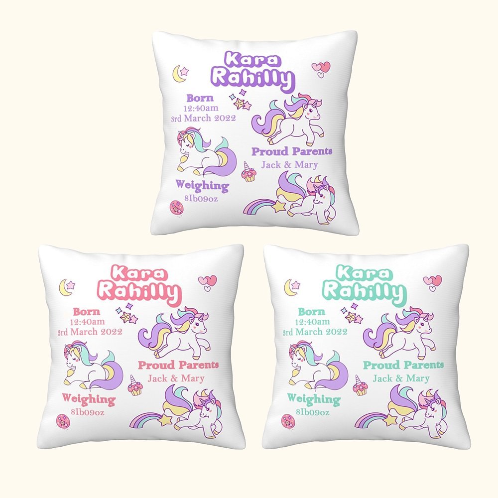 Chaque housse de coussin est fabriquée individuellement avec tous les détails de la naissance. C'est un beau cadeau pour les nouveaux parents et une excellente façon de décorer la chambre d'enfant.
