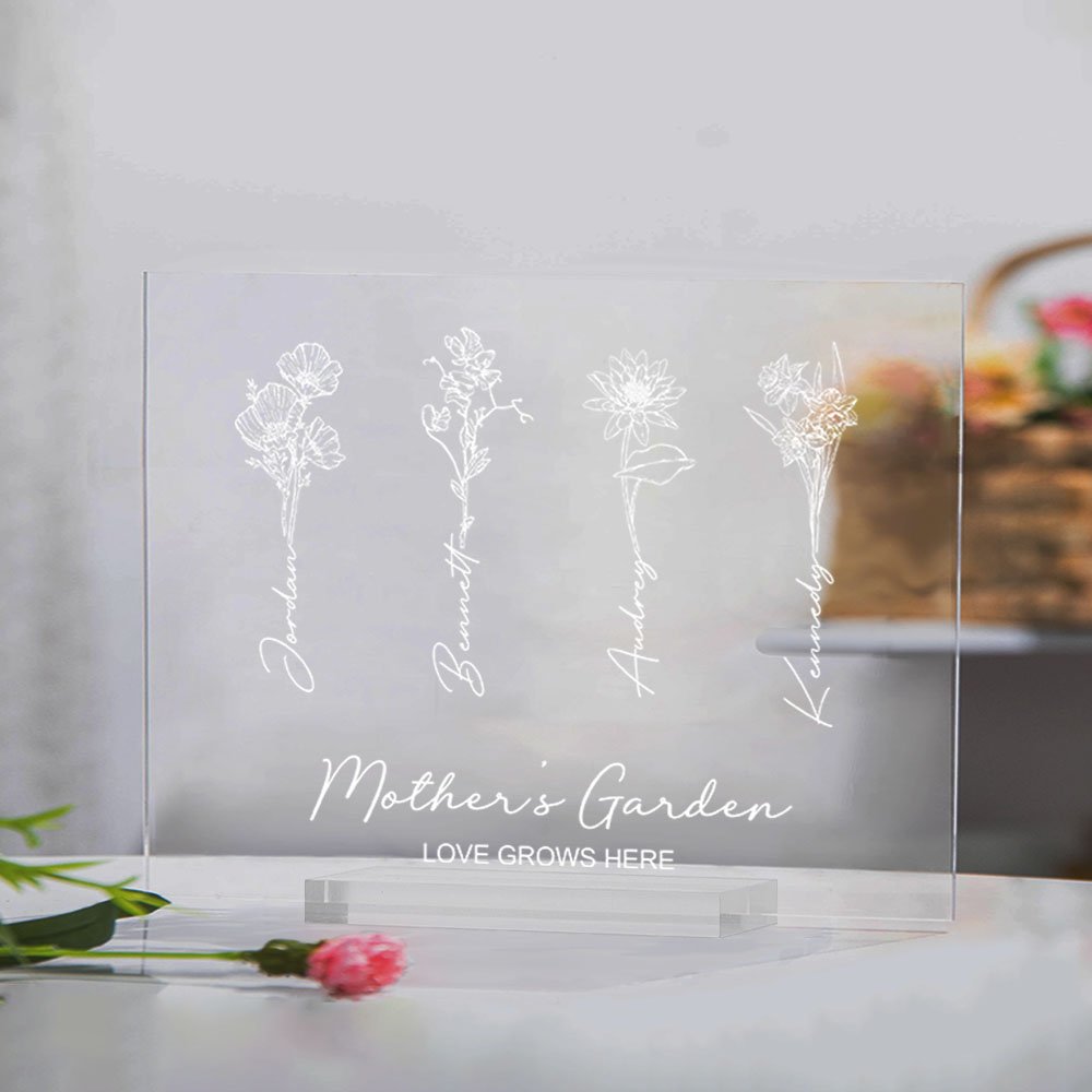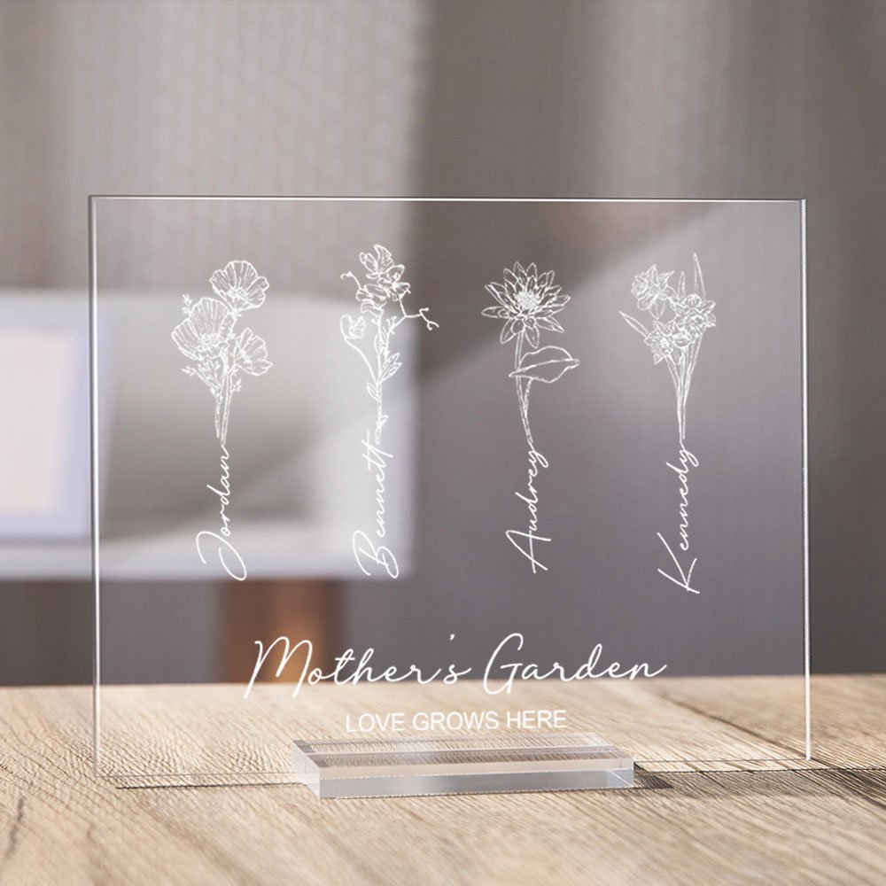 Cette plaque en acrylique est fabriquée dans un matériau de haute qualité et arbore un superbe motif de fleur de naissance qui confère un charme intemporel à tout environnement. Qu'elle soit exposée sur une étagère, une cheminée ou un mur, elle ne manquera pas d'attirer l'attention.