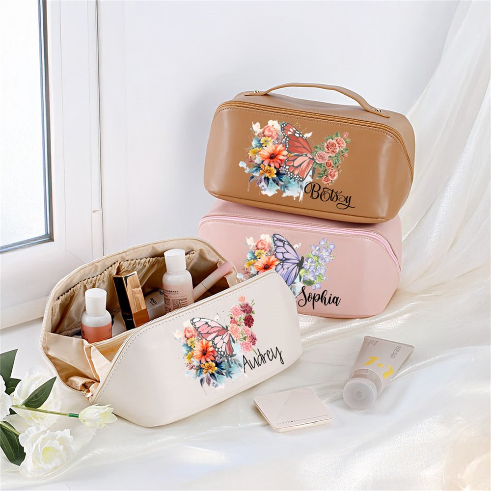 Les fleurs de naissance des mois 1 à 12 sont habilement intégrées avec des éléments de papillon. 4 couleurs de sac comme le blanc et le rose sont optionnelles. Vous pouvez personnaliser le nom et choisir parmi 4 polices de caractères. Chaque fois que vous ouvrez la trousse de maquillage, c'est comme si vous commenciez une histoire d'amour exclusive.